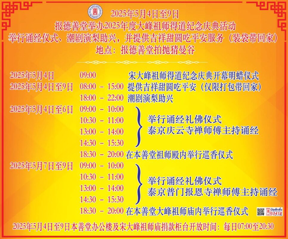 ระหว่างวันที่ 4 – 9 พฤษภาคม 2568 มูลนิธิป่อเต็กตึ๊ง โดย นายวิเชียร เตชะไพบูลย์ ประธานกรรมการ ขอเชิญศิษยานุศิษย์และสาธุชน ร่วมงานฉลองบรรลุธรรมหลวงปู่ไต้ฮง ประจำปี 2568 ณ มูลนิธิป่อเต็กตึ๊ง พลับพลาไชย กรุงเทพฯสักการะหลวงปู่ไต้ฮง (ไต้ฮงกง) เพื่อความเป็นสิริมงคล ชมการแสดงอุปรากรจีน (งิ้ว) และ รับประทานสาคูสิริมงคล (อี๊) โดยมูลนิธิฯ จัดเตรียมบริการเฉพาะบรรจุถุงให้ผู้มีจิตศรัทธานำกลับบ้านเท่านั้น
