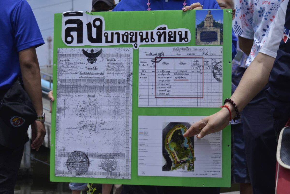 นางสาว กวิณภัสร์ กล่าวว่า เจ้าของที่ดินที่ลิงอาศัยอยู่ขณะนี้เอาที่ดินคืนโดยทำการรื้อป่าที่ลิงอาศัยอยู่ออกจนโล่งเตียน แต่ในปี พ.ศ 2550 กรุงเทพมหานครได้ซื้อที่ดินจากชาวบ้านกว่า 12 ไร่ และออกฉโนดให้เป็นที่อยู่อาศัยของลิงแสมบางขุนเทียนแต่ที่ดินพื้นที่ 12 ไร่ ไม่เคยได้รับการพัฒนาจากกรุงเทพมหานคร หรือจากสำนักงานเขตบางขุนเทียนเลย ทำให้บางฝูงออกนอกพื้นที่สร้างความเดือดรัอนให้กับชาวบ้านใกล้เคียง