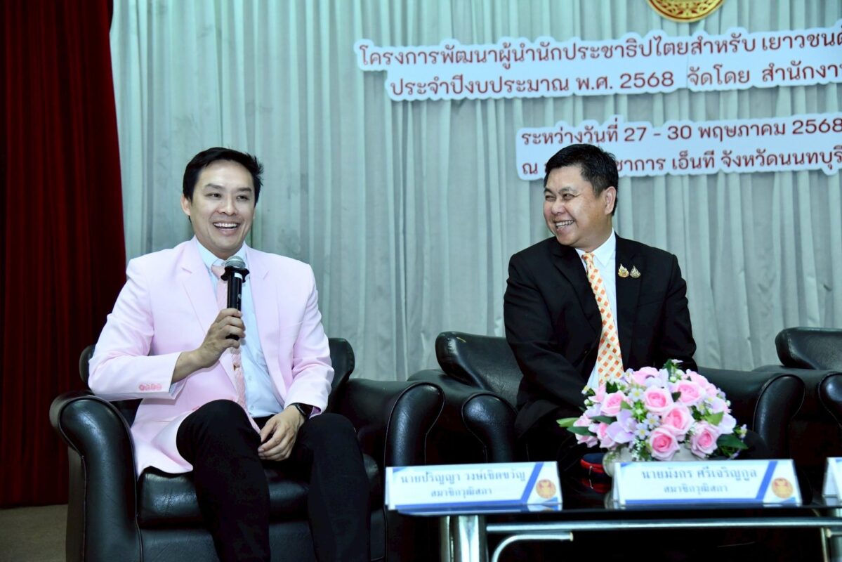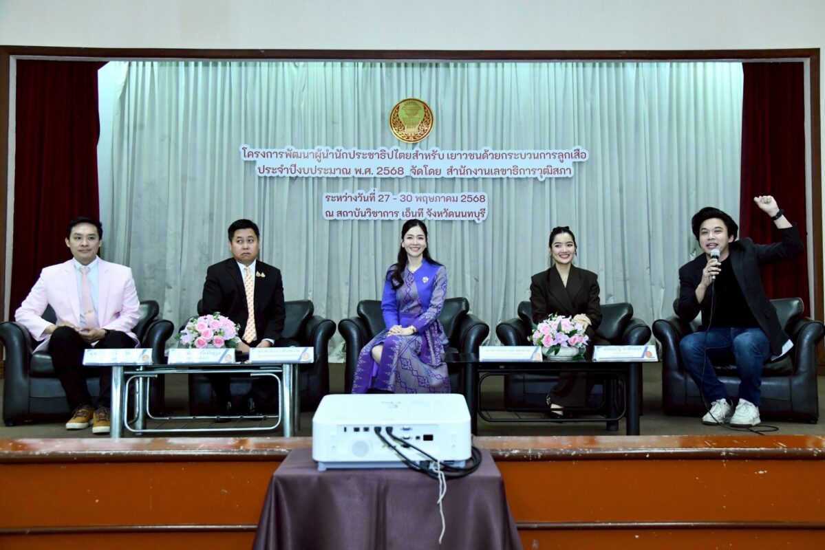 วันที่ 27 พฤษภาคม 2568 เวลา 13.00 – 15.00 นาฬิกา ณ สถาบันวิชาการ เอ็นที จังหวัดนนทบุรี ผู้เข้าร่วมโครงการพัฒนาผู้นำนักประชาธิปไตยสำหรับเยาวชนด้วยกระบวนการลูกเสือ ประจำปีงบประมาณ พ.ศ. 2568 รับฟังการเสวนา ในหัวข้อ ”บทบาทของเยาวชนกับการพัฒนาประชาธิปไตย“ โดยได้รับเกียรติจากวิทยากรผู้ทรงคุณวุฒิ ได้แก่
