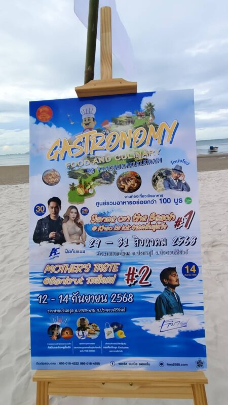 ส่วนครั้งที่ 2 ในธีม “รสมือแม่ Mother’s Taste” ระหว่างวันที่ 12 – 14 กันยายนนี้ เวลา 16 – 24.00 น. ที่บริเวณหาดบ้านกรูด อ.บางสะพาน ฟังเพลงจากหนุ่มประมงเสียงเล็ก “เล็ก-รัชเมศฐ์ The Voice Thailand” นักร้องสักลายร้อยล้านวิว พบกับอินฟลูเอ็นเซอร์สายอาหารชื่อดัง ปรุงอาหารแจกชิมฟรี !! ไฮไลท์งาน ชมแสดงควงกระบองไฟทุกค่ำคืน เวลา 20.40 น. ดนตรี การแสดง เกมรับของที่ระลึก กิจกรรม chef’s table เสิร์ฟแบบ Fine Dining ชมพลุหลากสี สุดอลังการ พร้อมกันนี้ พาณิชย์จังหวัดประจวบฯ จัดกิจกรรม “ตักกุ้ง” สุดมันส์ พบกับโปรนาทีทองจำหน่ายกุ้งขาวแวนนาไมจำนวน 1,100 กิโลกรัม ผ่านคูปองส่วนลด ขนาดตัว 40 – 55 / กก. ในราคาพิเศษจากกิโลกรัมละ 175 บาท เหลือ 135 บาท ไม่ต่ำกว่า 150 กก. ต่อวัน และจำหน่ายกุ้งสดในราคาหน้าบ่อจำนวน 35 กก. ต่อวัน มาร่วมสนุกกับการย่างกุ้งสดๆ พร้อมน้ำจิ้มซีฟู้ดสุดแซ่บ จึงขอชวนนักท่องเที่ยวร่วมสัมผัสเทศกาลอาหาร “Gastronomy @ Prachuapkirikhan” ทั้งสองครั้งอย่างเต็มรูปแบบที่จะสร้างความประทับใจในรสชาติ วิถีชุมชน และการท่องเที่ยวที่ยั่งยืน โดยไม่เสียค่าใช้จ่ายแต่อย่าใด