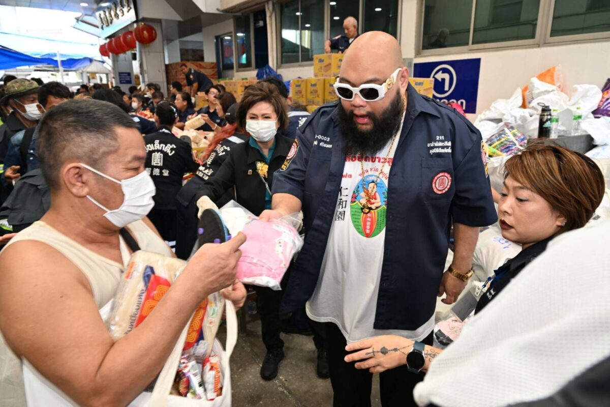 โดยสิ่งของที่แจกประกอบด้วย ข้าวสาร ปลากระป๋อง บะหมี่กึ่งสำเร็จรูป น้ำปลา น้ำมันพืช ขนม เสื้อผ้า รองเท้าแตะฟองน้ำ ฯลฯ บรรจุถุงผ้ามูลนิธิฯ โดยมี แพทย์หญิงวันทนีย์ วัฒนะ ปลัดกรุงเทพมหานคร เป็นประธานในพิธี พร้อมด้วย ดร.เสาวนีย์ เตชะไพบูลย์ ภริยาประธานกรรมการ แขกผู้มีเกียรติ ผู้แทนหน่วยงานในเครือมูลนิธิฯ อาสาสมัครกิตติมศักดิ์ และอาสาสมัครศิลปิน อาทิ นางสาวจิตรามณฑน์ เตชะไพบูลย์ ดร.ปภัสรา เตชะไพบูลย์ นางศิริพร โอภาสวงศ์ นางศิริวรรณ โอภาสวงศ์ และนายพลภัทร เตชะหรูวิจิตร ร่วมในพิธี ณ มูลนิธิป่อเต็กตึ๊ง พลับพลาไชย กรุงเทพฯ
