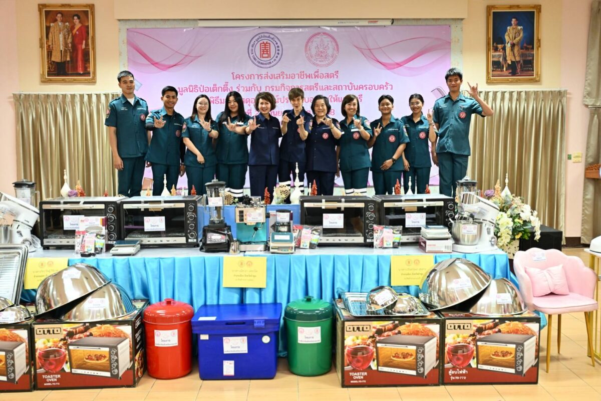 นางศิริกุล โอภาสวงศ์ กรรมการและเลขาธิการ เปิดเผยว่า โครงการ ส่งเสริมอาชีพเพื่อสตรีและครอบครัว มูลนิธิป่อเต็กตึ๊ง มีวัตถุประสงค์ เพื่อมอบวัสดุอุปกรณ์ประกอบอาชีพ แก่ สตรี บุรุษ พ่อเลี้ยงเดี่ยว ผู้ด้อยโอกาสทางสังคม หรือผู้ที่มีความหลากหลายทางเพศ ที่มีความรู้และความสามารถ ขาดแคลนวัสดุอุปกรณ์ในการประกอบอาชีพ โดยได้รับความร่วมมือจากศูนย์เรียนรู้การพัฒนาสตรีและครอบครัวและสถานคุ้มครองและพัฒนาอาชีพ จำนวน 12 แห่ง ได้แก่ กรุงเทพมหานคร นนทบุรี ชลบุรี สงขลา สุราษฎร์ธานี นครราชสีมา ศรีสะเกษ ขอนแก่น ลำพูน ลำปาง เชียงราย และพิษณุโลก คัดกรองผู้ที่ผ่านการฝึกอบรม เสริมทักษะอาชีพ ส่งมาให้มูลนิธิฯ พิจารณาตามเกณฑ์ที่กำหนดไว้ โดยมูลนิธิฯ หวังเป็นอย่างยิ่งว่า การดำเนินการโครงการดังกล่าวนี้ จะมีส่วนสนับสนุน ช่วยสร้างอาชีพ สร้างรายได้ เลี้ยงตนเองและครอบครัว ลดปัญหาความเหลื่อมล้ำในสังคม สร้างความสุขสู่ครอบครัว ชุมชน สังคม และประเทศชาติอย่างยั่งยืนต่อไป