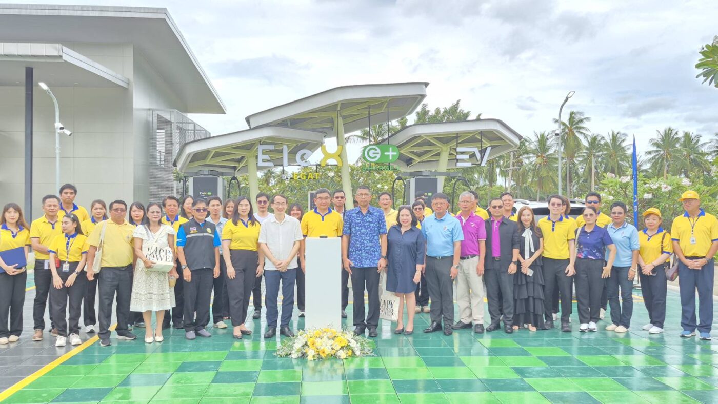 วันที่ 26 กันยายน 2568 นายเมธาวัจน์ พงศ์รดาภิรมย์ รองผู้ว่าการธุรกิจเกี่ยวเนื่อง (รวธ.) การไฟฟ้าฝ่ายผลิตแห่งประเทศไทย เป็นประธานในพิธีเปิดสถานีชาร์จ EleX by EGAT ณ ศูนย์การเรียนรู้ กฟผ. ทับสะแก Green Charging Station จังหวัดประจวบคีรีขันธ์ ซึ่งได้ร่วมกับพันธมิตรสร้างเป็นสถานีชาร์จต้นแบบจากวัสดุที่เป็นมิตรต่อสิ่งแวดล้อม โดยได้รับเกียรติจาก นายปรีดา สุขใจ รองผู้ว่าราชการจังหวัดประจวบคีรีขันธ์ พร้อมด้วย Mr.Goh Chee Kiong ประธานเจ้าหน้าที่บริหาร บริษัท ชาร์จพลัส อิเล็กทริค (ประเทศไทย) จำกัด (Charge+) นายนพดล สรวงประเสริฐ พลังงานจังหวัดประจวบคีรีขันธ์ คุณณิศรา ธัมมะปาละ ผู้อำนวยการฝ่ายจัดการธุรกิจนวัตกรรมพลังงาน กฟผ.นายภูศเดช ภัคดีพันธ์ ผจก.การไฟฟ้าส่วนภูมิภาคอำเภอทับสะแก นายสายชล ชนะภัย รองนายกอบต.นาหูกวาง นายภัทรดนัย สมศรี รองประธานชมรมกำนันผู้ใหญ่บ้านอำเภอทับสะแก นางพิมลรรณ วงศ์ทิม ประธานชมรมครูอำเภอทับสะแก นายมหยศ โกศิน หัวหน้าศูนย์การเรียนรู้ กฟผ.ทับสะแก นายพนม ปัถวี หัวหน้าแผนกโรงไฟฟ้าทับสะแก และหน่วยงานพันธมิตรเข้าร่วมพิธี