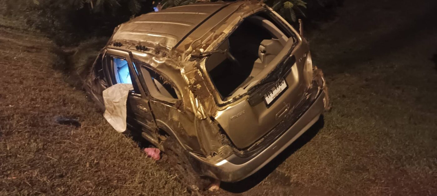 ต่อมา พบรถยนต์อเนกประสงค์ยี่ห้ออีซุซุ รุ่น MU7 สีบรอนซ์ทอง ทะเบียน กร 1780 กาญจนบุรี ขับผ่านมาด้วยท่าทีมีพิรุธ เจ้าหน้าที่จึงส่งสัญญาณให้หยุดตรวจ แต่รถกลับเร่งเครื่องฝ่าด่านหนี เจ้าหน้าที่จึงไล่ติดตาม ก่อนที่รถจะเสียหลักประสบอุบัติเหตุหน้าหน่วยเฉพาะกิจลาดหญ้า ตำบลท่าขนุน