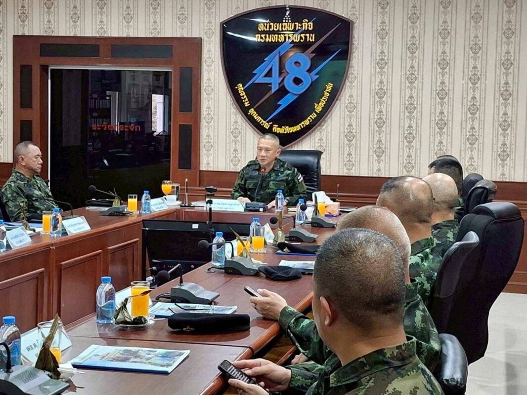 วันที่ 25 กันยายน 2568 กองบัญชาการกองทัพไทย โดย พลเอก ทรงวิทย์ หนุนภักดี ผู้บัญชาการทหารสูงสุด พร้อมด้วย พลเอก อุกฤษฎ์ บุญตานนท์ รองผู้บัญชาการทหารสูงสุด พลเอกไพบูลย์ วรวรรณปรีชา รองเสนาธิการทหาร และคณะ ลงพื้นที่กองอำนวยการรักษาความมั่นคงภายในภาค 4 ส่วนหน้า ในเขตพื้นที่จังหวัดนราธิวาส เพื่อตรวจเยี่ยม ให้กำลังใจ และขอบคุณกำลังพลของหน่วยที่ปฏิบัติภารกิจ รักษาความสงบเรียบร้อยและช่วยเหลือประชาชนในจังหวัดชายแดนภาคใต้ ประกอบด้วย