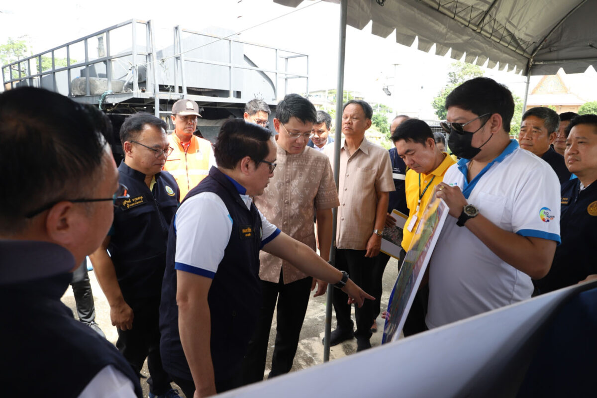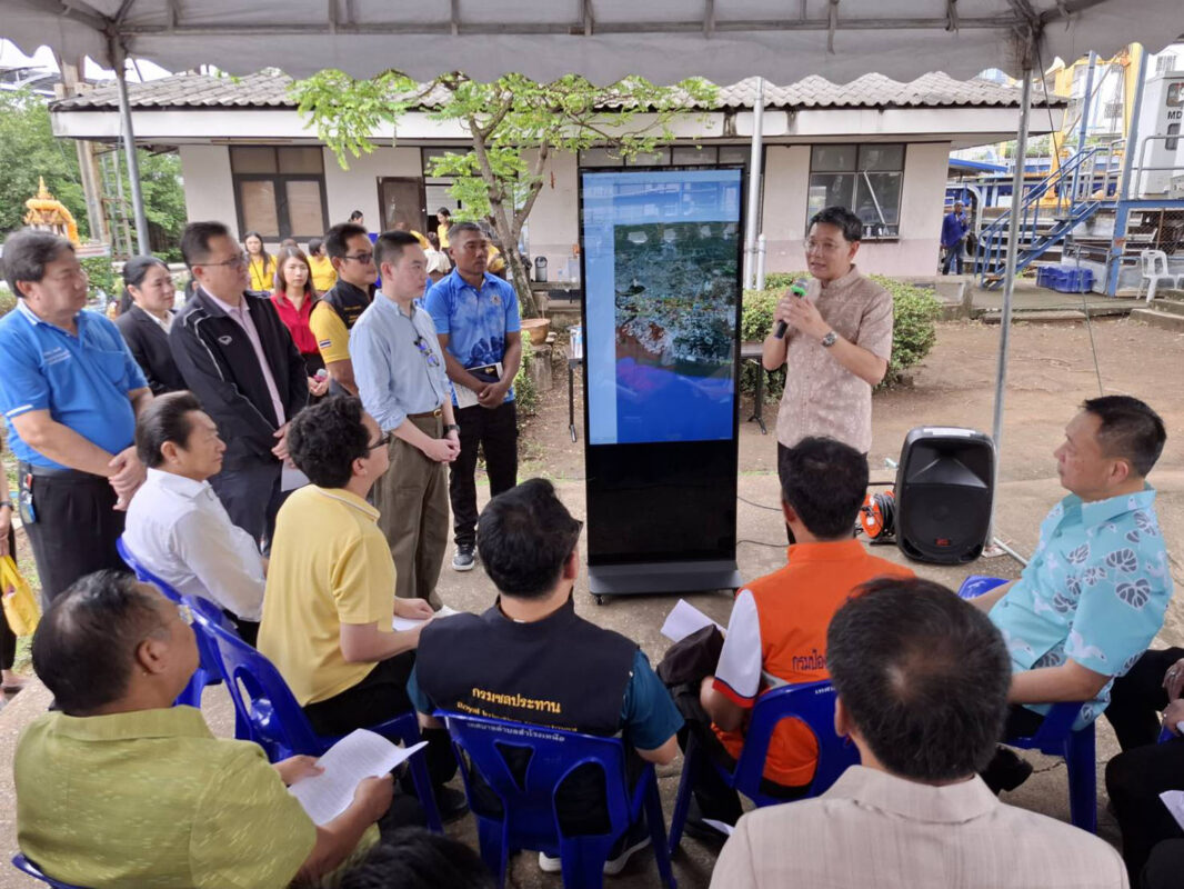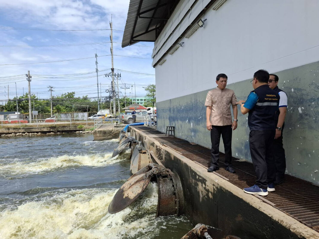 วันที่ 1 ตุลาคม 2568 เวลา 09.00 น. นายสยาม ศิริมงคล ผู้ว่าราชการจังหวัดสมุทรปราการ พร้อมด้วยหน่วยงานที่เกี่ยวข้อง ติดตามการพร่องน้ำในคลองสำโรง ณ สถานีสูบน้ำสำโรงเหนือ อำเภอเมืองฯ จังหวัดสมุทรปราการ โดยมี นายธนาชัย เพชรบดีนายกเทศมนตรีเทศบาลตำบลสำโรงเหนือ พร้อมเจ้าหน้าที่ร่วมให้ข้อมูลการดำเนินการพร่องน้ำของสถานีสูบน้ำสำโรงเหนือ