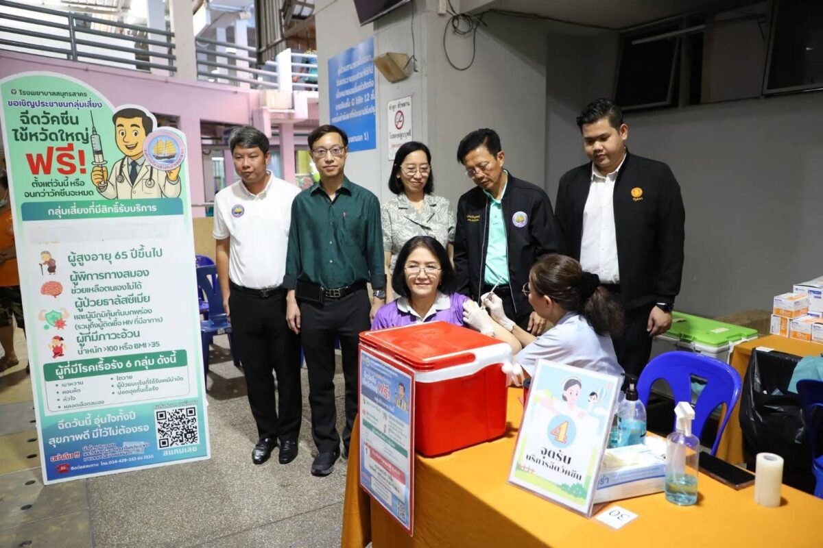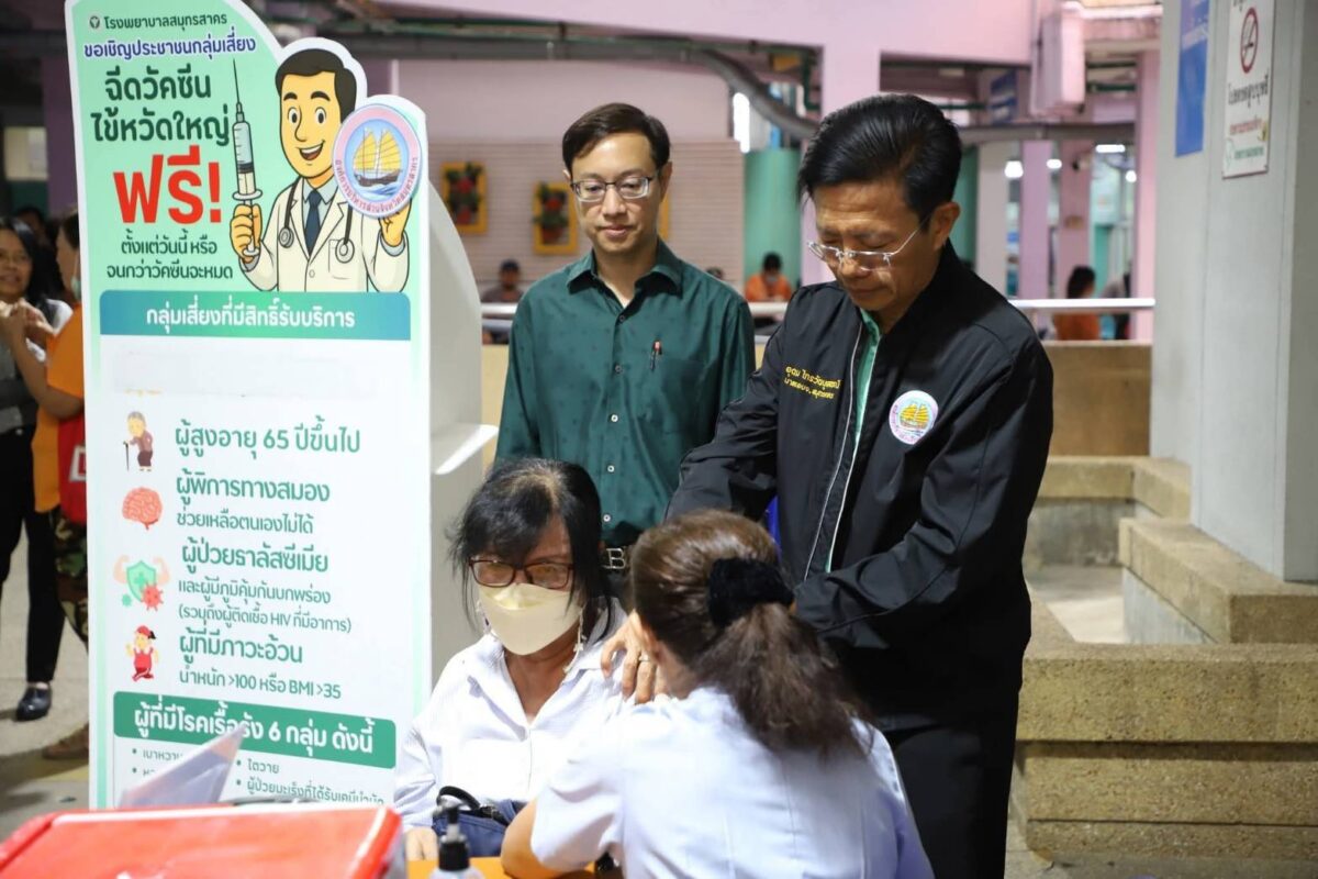 โดย นายอุดม นาย อบจ.สมุทรสาคร เปิดเผยว่า องค์การบริหารส่วนจังหวัดฯได้จัดโครงการอุดหนุนงบประมาณเพื่อจัดซื้อวัคซีนแจดที่ป้องกันไวรัสไข้หวัดใหญ่ รวม 3 ชนิด ได้แก่ ไข้หวัดใหญ่สายพันธุ์ A (H1N1), ไข้หวัดใหญ่สายพันธุ์ A (H3N2), สายพันธุ์ B (ตระกูล Victoria) จำนวน 3,300 โดส ตามมติคณะกรรมการควบคุมโรคติดต่อจังหวัดฯ นอกจากนี้ยังมอบให้โรงพยาบาลกระทุ่มแบน จำนวน 500 โดสรพ.สต.บางยาง 150 โดส, รพ.สต.ดอนไก่ดี 100 โดส, รพ.สต.บ้านสวนหลวง 300 โดส และ รพ.สต.บ้านรางปลาซิว 50 โดส รวมถึงในพื้นที่กระทุ่มแบน 1,100 โดส และโรงพยาบาลสมุทรสาคร 2,200 โดส รวมทั้งสิ้น 3,300 โดส ทั้งนี้รวมเป็นงบประมาณทั้งสิ้น 462,000. บาท (สี่แสนหกหมื่นสองพันบาทถ้วน) เพื่อนำวัคซีนไปฉีดให้กับกลุ่มเสี่ยง “จึงฝากเชิญชวน ปชช.กลุ่มเสี่ยงมาฉีดวัคซีนป้องกันไวรัไข้หวัดใหญ่ ตามสิทธิ์ทีาได้รับบริการ และผู้สูงวัยอายุ 65 ปีขึ้นไป, ผู้พิการทางสมองช่วยเหลือตนเองไม่ได้, ผู้ป่วยธาลัสซีเมียและผู้มีภูมิคุ้มกันบกพร่อง ผู้ที่มีภาวะอ้วน และกลุ่ม 6 โรคเรื้อรัง เช่น เบาหวาน หอบหืด หัวใจ หลอดเลือดสมอง ไตวาย ผู้ป่วยมะเร็งที่ได้รับเคมีบำบัด และปอดอุดกั้นเรื้อรัง สามารถฉีดวัคซีนป้องกันไวรัสไข้หวัดใหญ่ได้ ณ บริเวณลานหน้าตึก 12 ชั้น วันจันทร์ – ศุกร์ ระหว่าง 08.30 – 15.00 น. ได้ตั้งแต่บัดนี้จนกว่าวัคซีนจะหมด หรือโทร.034-429-333 (2110) อีกด้วย”