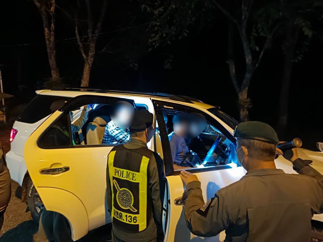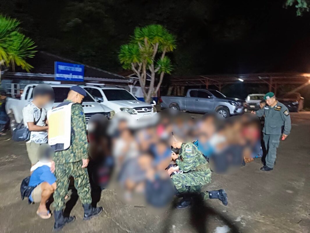 ต่อมาเวลา 20.30 น. ขณะที่เจ้าหน้าที่ร่วมกันตั้งจุดตรวจจุดสกัด บริเวณ จุดตรวจร่วมไทรโยค บ้านพุองกะ ม.4 ต.ท่าเสา อ.ไทรโยค จ.กาญจนบุรี สังเกตพบรถยนต์ จำนวน 4 คัน ลักษณะตรงตามที่ได้รับแจ้งจากแหล่งข่าว จึงได้ให้สัญญาณหยุดรถเพื่อทำการตรวจสอบ พบผู้กระทำความผิดตาม พ.ร.บ.คนเข้าเมือง พ.ศ.2522 จำนวน 46 คน ประกอบด้วย บุคคลซึ่งไม่มีสัญชาติไทย จำนวน 4 คน (นายมินทดา อรามศรี อายุ 44 ปี, นายอ่องไข่ อายุ 40 ปี, นายมิววินดู อายุ 33 ปี และ นายซานอ่อง อายุ 33 ปี) ซึ่งเป็นผู้ขับขี่รถยนต์ทั้ง 4 คัน (รถยนต์กระบะ Mitsubishi Triton หมายเลขทะเบียน บว 9522 ราชบุรี, รถยนต์กระบะ Toyota Hilux Revo หมายเลขทะเบียน บษ 9444 ราชบุรี, รถยนต์กระบะ Toyota Hilux Vigo หมายเลขทะเบียน ฒส 8240 กรุงเทพมหานคร และ รถยนต์อเนกประสงค์ 7 ที่นั่ง Toyota Fortuner หมายเลขทะเบียน กว 5349 ราชบุรี) ภายในรถยนต์บรรทุกบุคคลต่างด้าวผิดกฎหมายสัญชาติเมียนมา จำนวน 42 คน (ชาย 36 คน, หญิง 6 คน) ซึ่งทั้งหมดไม่สามารถสื่อสารภาษาไทย และไม่มีเอกสารประจำตัวที่ทางราชการออกให้ เจ้าหน้าที่จึงได้ควบคุมตัวไว้ทั้งหมด