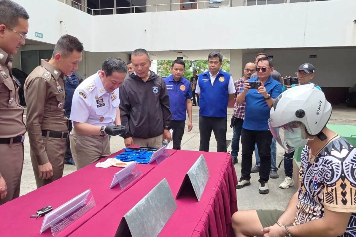 หลังจากสืบทราบว่า จะมีผู้ค้ายาเสพติดนัดส่วมอบกันที่บริเวณริมถนนหน้าร้านสะดวกซื้อ ตรงข้ามโรงเรียนวัดช่องลม ม.7 ต.ท่าจีน อ.เมืองฯ ก่อนจะจึงวางแผนในการจับกุม ณ บริเวณใกล้เคียง กระทั่งมีรถยนต์เก๋งผู้ต้องสงสัยตามที่ได้รับรายงานมาถึงจุดดังกล่าว จากนั้นจึงควบคุมตัวมาสอบสวนซึ่งจากการสอบสวนพบว่า มีประวัติเคยถูกจับกุมมาอล่ว เมื่อปี2562 ในข้อหามียาเสพติดให้โทษประเภท 1 ไว้ในครอบครองเพื่อจำหน่ายในพื้นที่ ต.โคกขาม ต่อมาได้พ้นโทษมาแล้ว