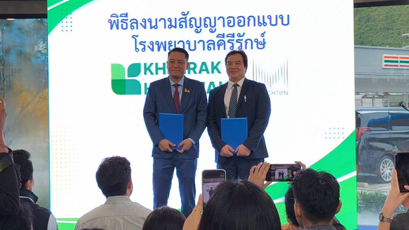 วันที่ 10 ตุลาคม 2568 ที่ห้องรับรองปั๊มน้ำมัน ปตท. อ่าวน้อย อ.เมืองฯ จ.ประจวบคีรีขันธ์ คณะผู้บริหารโรงพยาบาลคีรีรักษ์ นำโดย นายคณิสรณ์ เตชะสถิตย์กุล และนายปิติณัฐ พรรณวงค์ พร้อมคณะร่วมกันแถลงข่าวและลงนามสัญญาการออกแบบการก่อสร้างโรงพยาบาลคีรีรักษ์ ขนาดเริ่มต้น 60 เตียง พร้อมแผนขยายเพิ่มเป็น 250 เตียงในอนาคต ตั้งอยู่บริเวณถนนเพชรเกษม ตรงข้ามศูนย์รถยนต์ฮอนด้าประจวบคีรีขันธ์