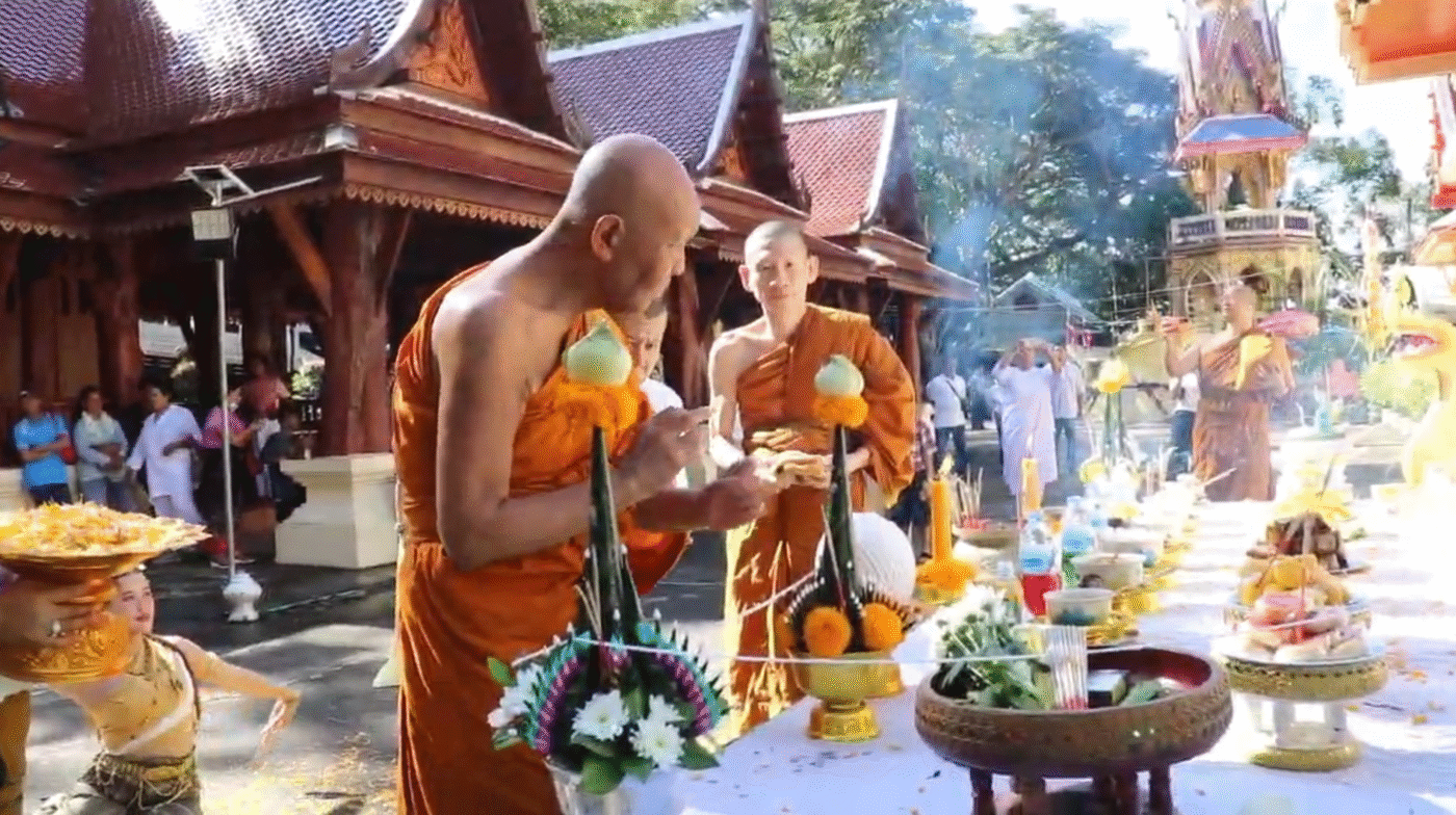 ทั้งนี้ในช่วงเช้า มีพิธีบวงสรวงและรำบวงสรวง ทำพิธีทางศาสนาภายในอุโบสถ เททองพรมน้ำมนต์ จากนั้นรำถวายต้อนรับจาก ทีมนางรำแก๊งนางฟ้าบางใหญ่แห่พุ่งองกฐินสามัคคี ช่วงบ่ายถวายพุ่งกฐินสามัคคี แก่พระภิกษุสงฆ์