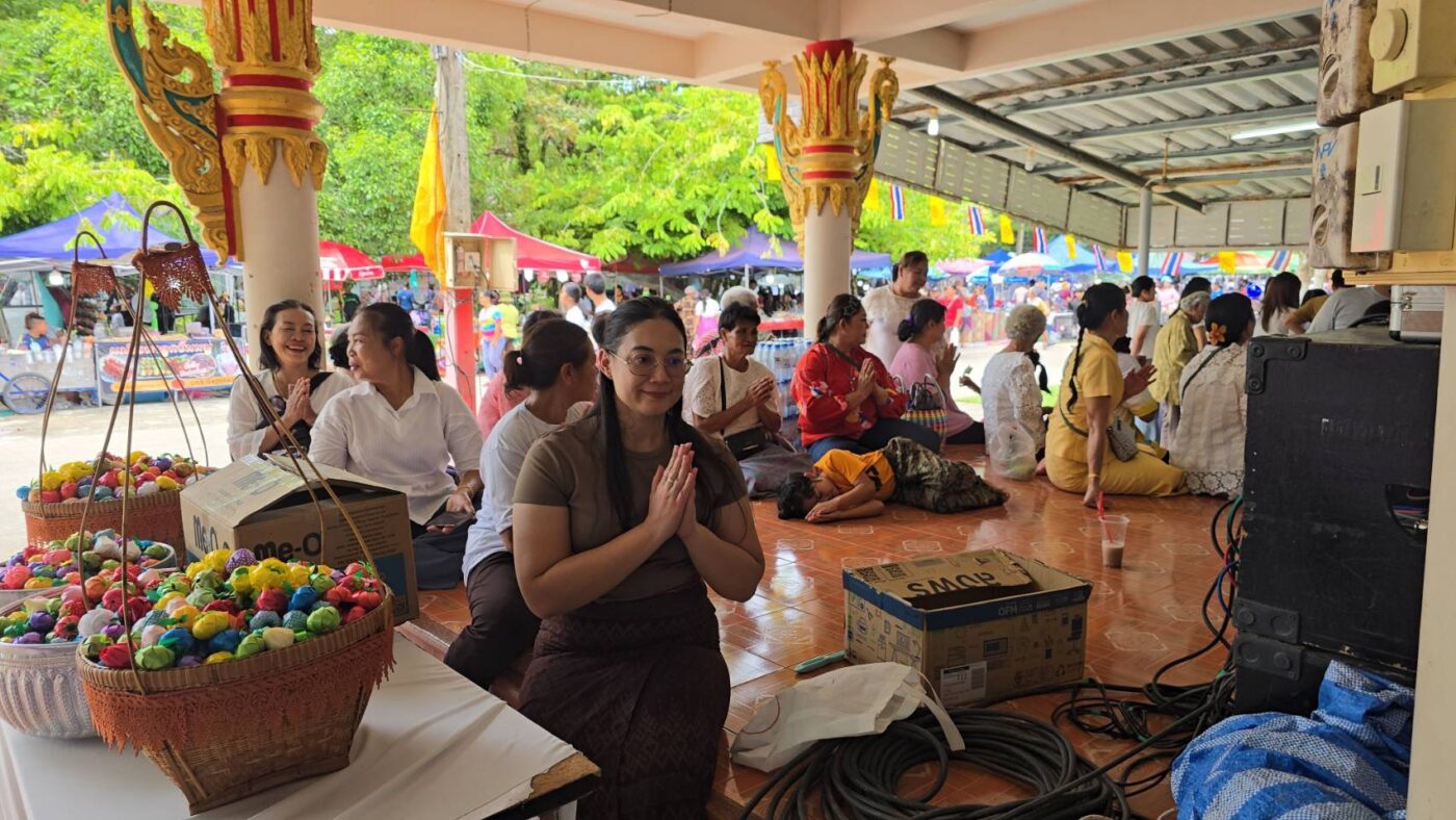 โดยภายในงานเป็นไปอย่างคึกคักตั้งแต่ช่วงเช้า บรรดาผู้ใจบุญต่างพากันมาตั้งโรงทาน แจกอาหารคาวหวาน เครื่องดื่ม และขนมไทยนานาชนิดให้ผู้ร่วมงานได้อิ่มบุญ อิ่มใจ พร้อมบรรยากาศแห่งความศรัทธาและความสามัคคีของพี่น้องชาวพุทธในพื้นที่