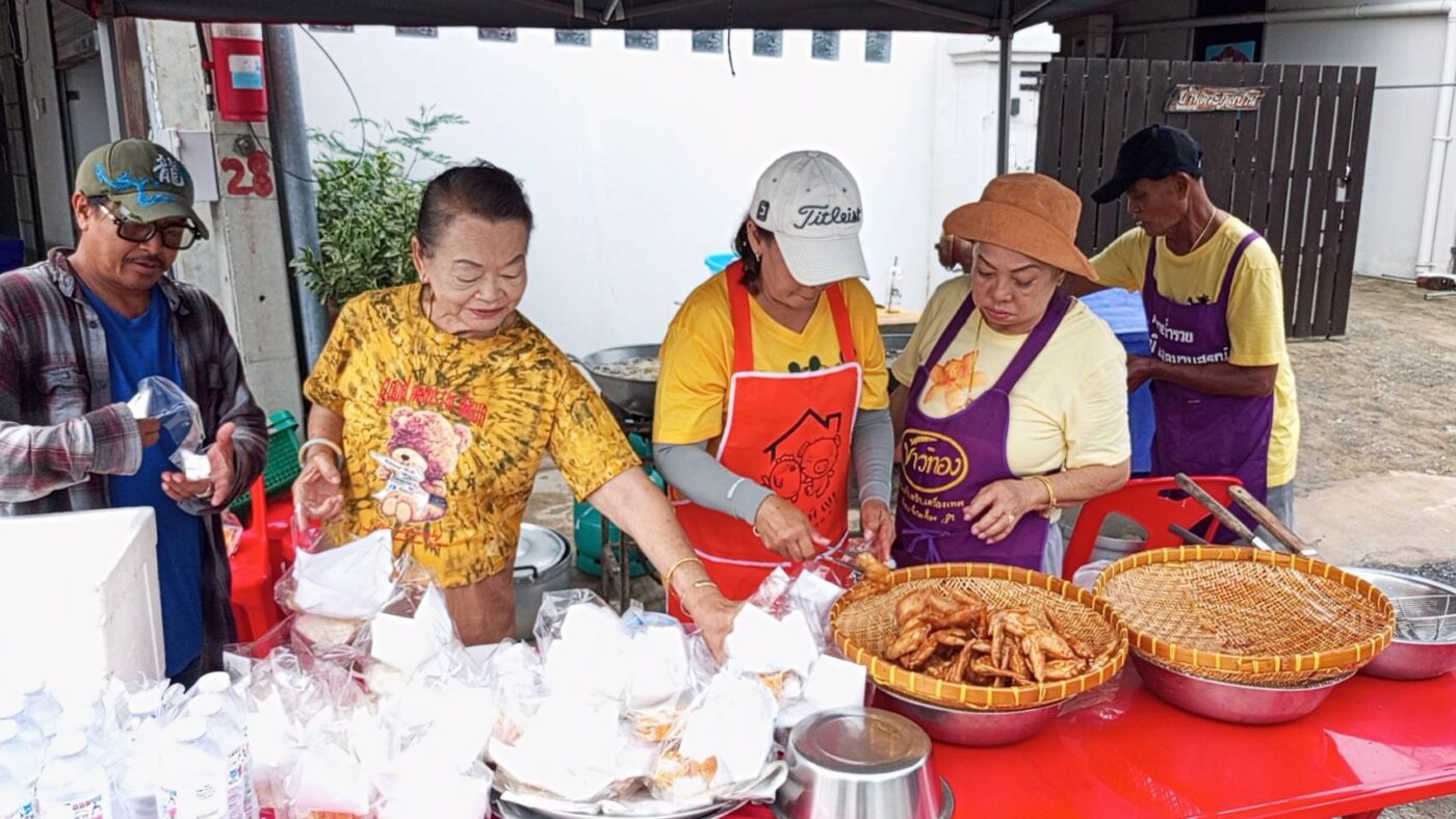 คุณเสวก – คุณวรรณา รัตนอำภา จากร้านช.บุญเลิศ และร้านนานาอะไหล่ บ้านตระกูลปาน อ.อรวรรณ พร้อมเพื่อนๆ จากมหาวิทยาลัยราชภัฏเทพสตรี ได้ร่วมกันจัดตั้งโรงทาน แจกข้าวเหนียวไก่ทอด ขนมตาล และน้ำดื่มแก่ประชาชนและผู้ที่สัญจรไปมา