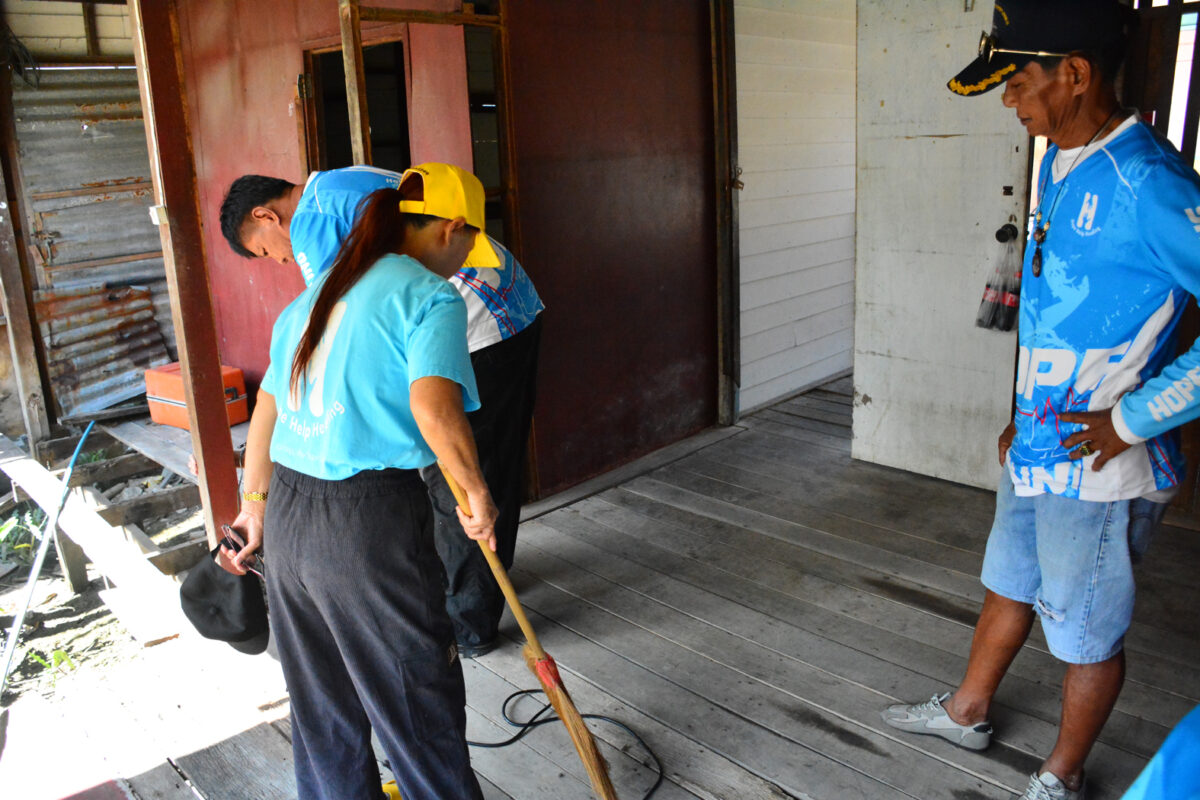นายวสุ เผ่าตำรวจ รองประธานชมรมโฮปฯ กล่าวว่า “ครั้งก่อนที่มาเยี่ยมลืมนำปัตตาเลี่ยนมา ครั้งนี้เลยตั้งใจกลับมาตัดผมให้ด้วยตัวเอง ขณะเดียวกันทางชมรมโฮปฯ ดูแลผู้ป่วยรายนี้อย่างต่อเนื่อง ตั้งแต่ช่วยรักษาดวงตาจนกลับมามองเห็นได้ชัดเจน ตอนแรกที่พบ เขาต้องใช้ตัวไถออกมานอกห้องด้วยความลำบาก ครั้งนี้ก็ถือโอกาสสำรวจบ้านเพื่อเตรียมซ่อมประตูและกันสาดให้เรียบร้อย”