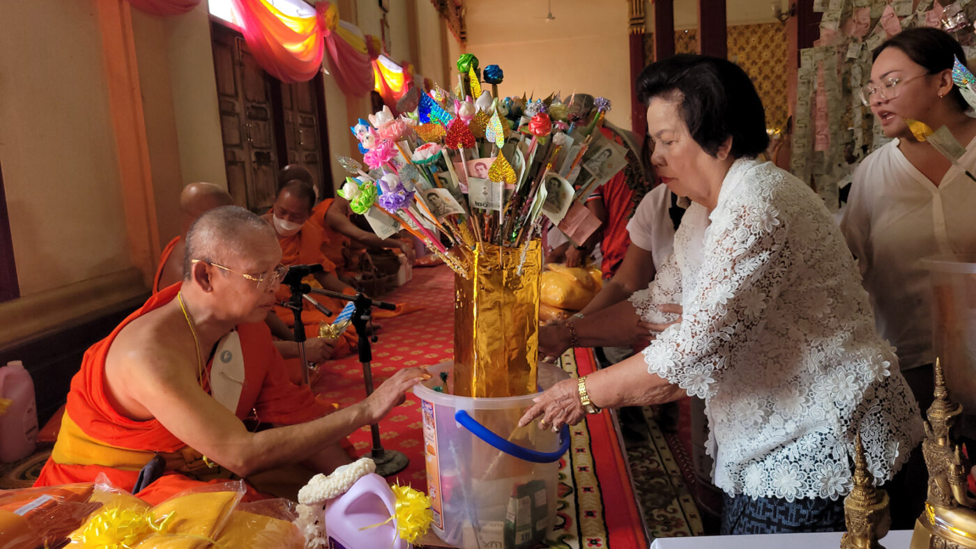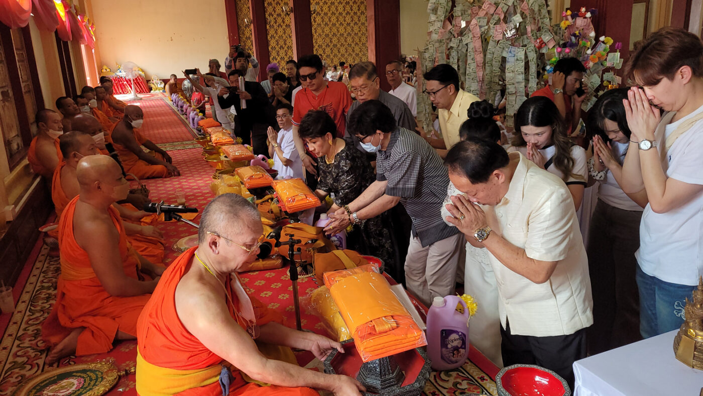 คุณแม่ทองม้วน อิษวาส คุณแม่น้อย พงษ์จันทร์ และคณะเจ้าหน้าที่ชมรมโฮมสะพานบุญแห่งความหวังและศรัทธา อีกทั้งในปีนี้ยังได้รับเกียรติจาก คุณภิญโญ กิจเลิศไพโรจน์ และผู้นำท้องถิ่น เดินทางมาร่วมในพิธีตลอดจนคณะศิษยานุศิษย์ วัดพระธรรมกาย พุทธศาสนิกชนผู้ใจบุญ ชาวอำเภอเมือง และอำเภอใกล้เคียง ร่วมบุญกันอย่างเรียบง่ายและร่วมไว้อาลัยแด่พระบรมราชชนนีพันปีหลวง นอกจากนี้ พุทธศาสนิกชนผู้ใจบุญยังได้ร่วมกันนำอาหารปรุงสุกนำมาออกร้านตั้งโรงทานแจกจ่ายให้แก่ประชาชนที่ร่วมในพิธีครั้งนี้ ก่อนจะแห่องค์กฐินรอบพระอุโบสถและร่วมถวายองค์กฐิน ซึ่งในปีนี้ทางวัดมหาวงษ์ ปากน้ำ ได้ยอดเงินทอดกฐินสามัคคี จากการทำบุญของพุทธศาสนิกชนผู้ใจบุญรวมกว่า 1 ล้านบาท