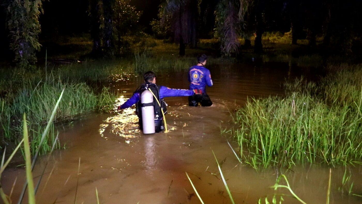ด้านหน่วยอาสากู้ภัยทางน้ำ บอกว่าหลังจากรับแจ้งก็วางแผนเร่งค้นหาพบว่าร่างจมอยู่ในน้ำมีความลึกประมาณ 2 เมตร สภาพมีหญ้าติดพันอยู่บริเวณขา