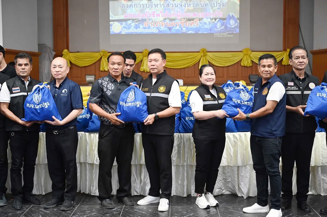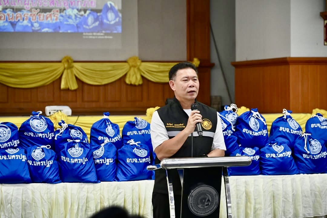 วันที่ 28 ตุลาคม 2568 ณ หอประชุมที่ว่าการอำเภอนครชัยศรี อบจ.นครปฐม โดยการนำของ นายจิรวัฒน์ สะสมทรัพย์ นายก อบจ.นครปฐม และนางวิลาสินี สะสมทรัพย์ ภริยา พร้อมด้วย สมาชิกสภาฯ หัวหน้าส่วนราชการ ข้าราชการ อบจ.นครปฐม ในการนี้นายอนุชา สะสมทรัพย์ อดีต รมต. ช่วยว่าการกระทรวงสาธารณสุข ได้มีความห่วงใยพี่น้องประชาชน ร่วมลงพื้นที่เพื่อมอบถุงยังชีพให้แก่ผู้นำชุมชน ผู้นำท้องที่ ในพื้นที่น้ำท่วม ในเขตอำเภอนครชัยศรี เพื่อนำไปส่งต่อให้ประชาชนที่ประสบเหตุอุทกภัย
