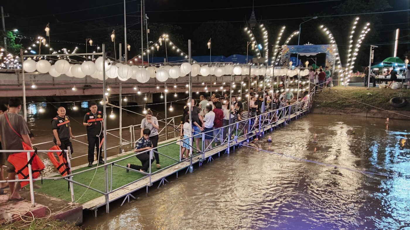 ในส่วนของการลอยกระทง ปีนี้มีการจัดไว้ 2 จุดหลัก ได้แก่ จุดลอยกระทงทั่วไป บนสะพานที่ประดับด้วยโคมไฟสว่างไสวตลอดแนว มองเห็นภาพงดงามเหนือผิวน้ำ, จุดไคลแม็กซ์ “รางสแตนเลสเพื่อผู้สูงอายุ” นับเป็นไอเดียสร้างสรรค์จากเทศบาลตำบลท่าไม้ ที่ออกแบบรางสแตนเลสยื่นลงไปในคลอง ช่วยให้ผู้สูงอายุสามารถปล่อยกระทงได้สะดวก ปลอดภัย ไม่ต้องก้มมากหรือลงใกล้น้ำ ทั้งยังกลายเป็นกิจกรรมยอดนิยมของเด็กและครอบครัวที่อยากมาลองประสบการณ์ใหม่