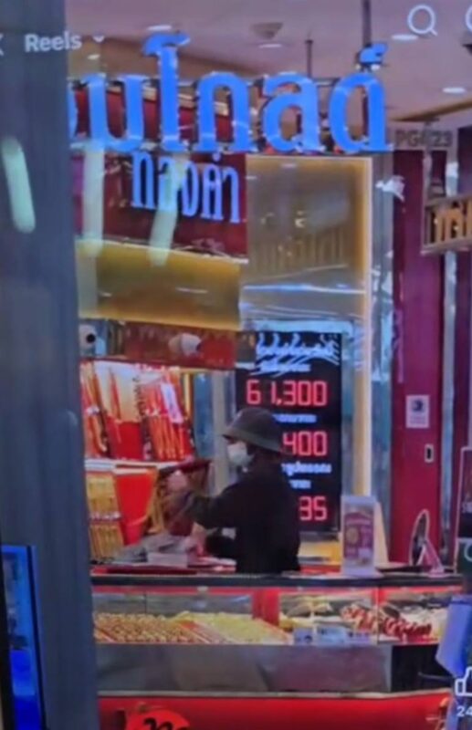 จากการสอบถามพนักงานขายของห้างทองฯ เล่าว่า ตอนเกิดเหตุมีพนักงานอยู่หน้าเคาน์เตอร์ทั้งหมด 5 คน โดยคนร้ายเป็นชายมีลักษณะผอม สูง สวมเสื้อแขนยาวสีดำ นุ่งกางเกงขายาวสีดำ ใส่หมวก สะพายกระเป๋า และมีแมสปิดบังใบหน้า เดินเข้ามาถึงก็ยกอาวุธปืนขู่พนักงาน แล้วก็กระโดดข้ามเคาน์เตอร์ไปทุบกระจกคว้าสร้อยคอทองคำไปจำนวนหนึ่ง น้ำหนักรวมกันราวๆ 55 บาท หากคิดเป็นราคาซื้อขาย ณ วันนี้ ตกอยู่ที่ประมาณ 3,377,000 บาท ซึ่งพนักงานทุกคนรู้สึกตกใจเป็นอย่างมาก เพราะไม่คาดคิดว่าจะเกิดเหตุการณ์เช่นนี้ พอเมื่อเกิดเหตุก็รีบแจ้งไปยังศูนย์ 191 และ กดปุ่มฉุกเฉินทันที
