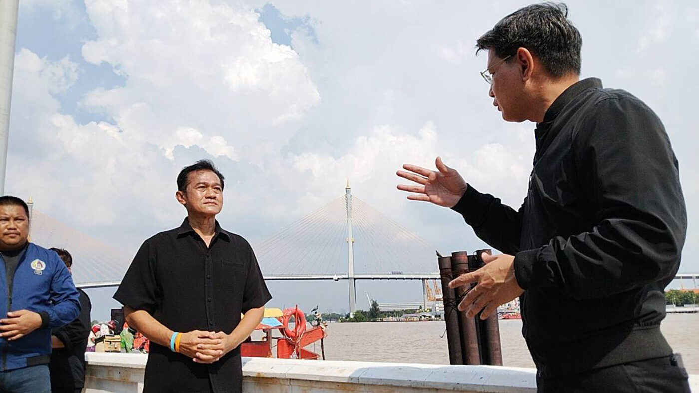สมุทรปราการ – ผู้ว่าฯสมุทรปราการ พร้อมหน่วยงาน ลงพื้นที่สำรวจสถานการณ์แม่น้ำเจ้าพระยา วางแผนรับมือน้ำเหนือ–น้ำทะเลหนุน