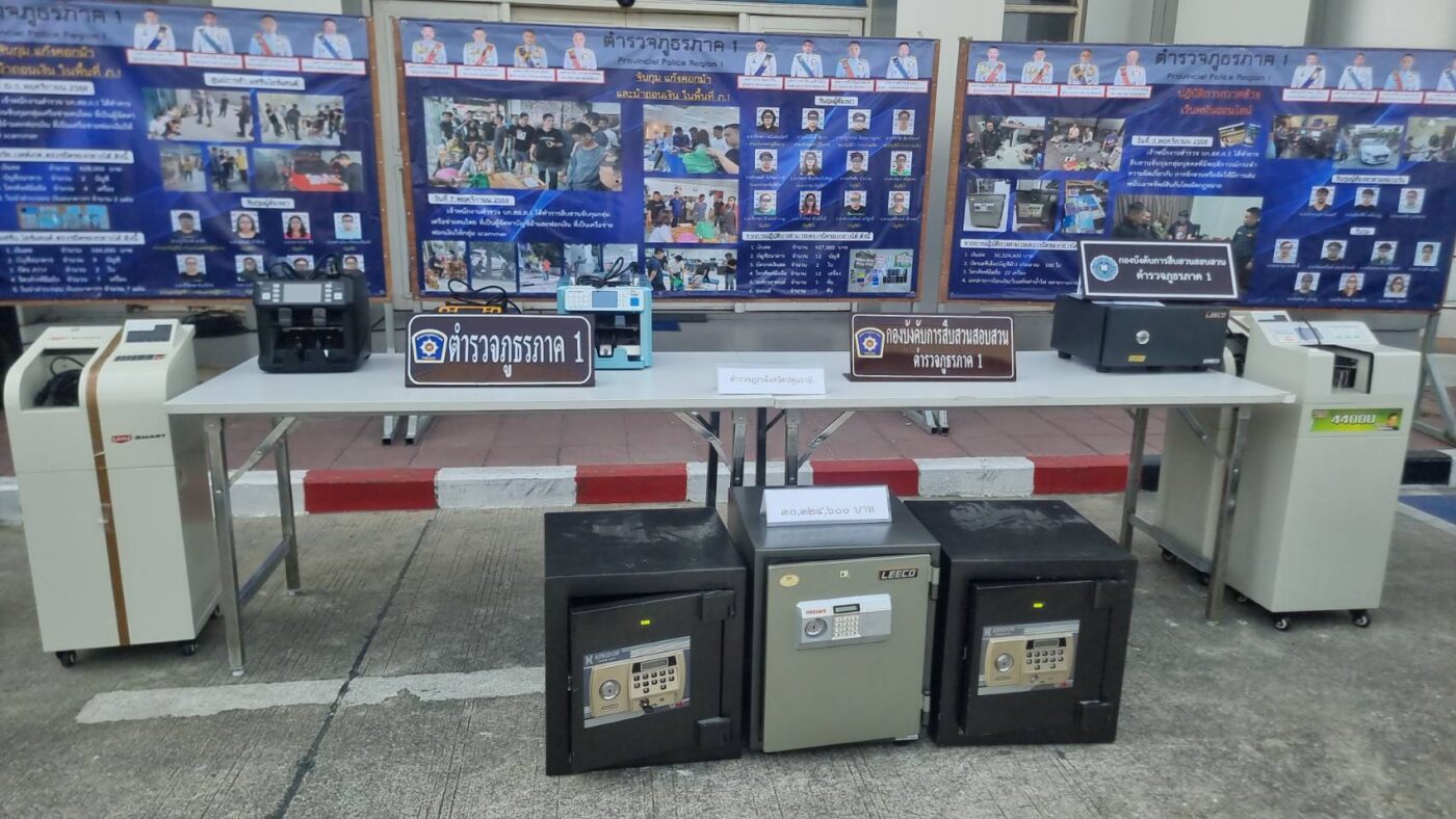 1. ร่วมกันกันจัดให้มีการเล่นหรือทำอุบายล่อ ฯ และร่วมกันฟอกเงิน” พร้อมด้วยของกลาง เงินสด จำนวน 30,324,600 บาท บัตรเอทีเอ็ม (บัญชีม้า) ประมาณ 100 ใบ , โทรศัพท์มือถือ 22 เครื่อง ,เอกสารการโอนเงินใบเสร็จค่าน้ำไฟหลายรายการระหว่างตรวจนับและทำการตรวจยึดอายัดทรัพย์ตาม พ.ร.บ.ป้องกันและปราบปรามการฟอกเงินยอดรวม 20 ล้านบาท