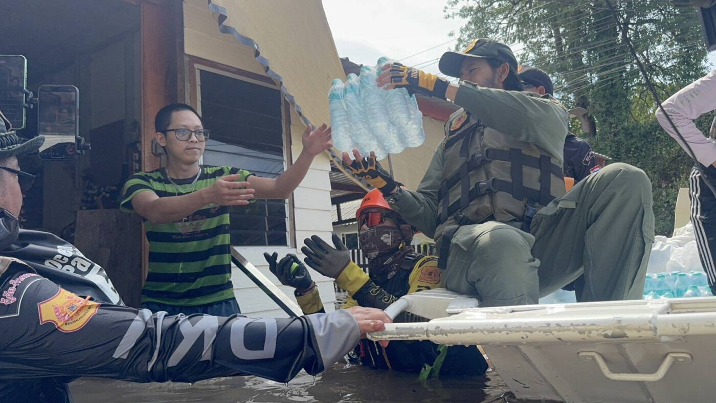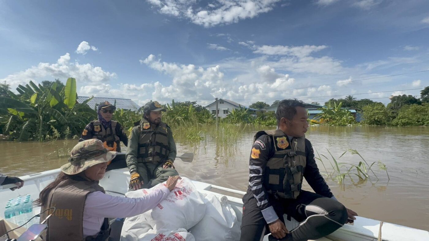 โดยคณะของบิณฑ์ บรรลือฤทธิ์ ได้นำเรือท้องแบนบรรทุก ข้าวสาร อาหารแห้ง น้ำดื่ม และเงินช่วยเหลือครอบครัวละ 1,000 บาท ลงพื้นที่ไปมอบให้แก่ผู้ประสบภัยถึงหน้าบ้าน เพื่อบรรเทาความเดือดร้อนในเบื้องต้น