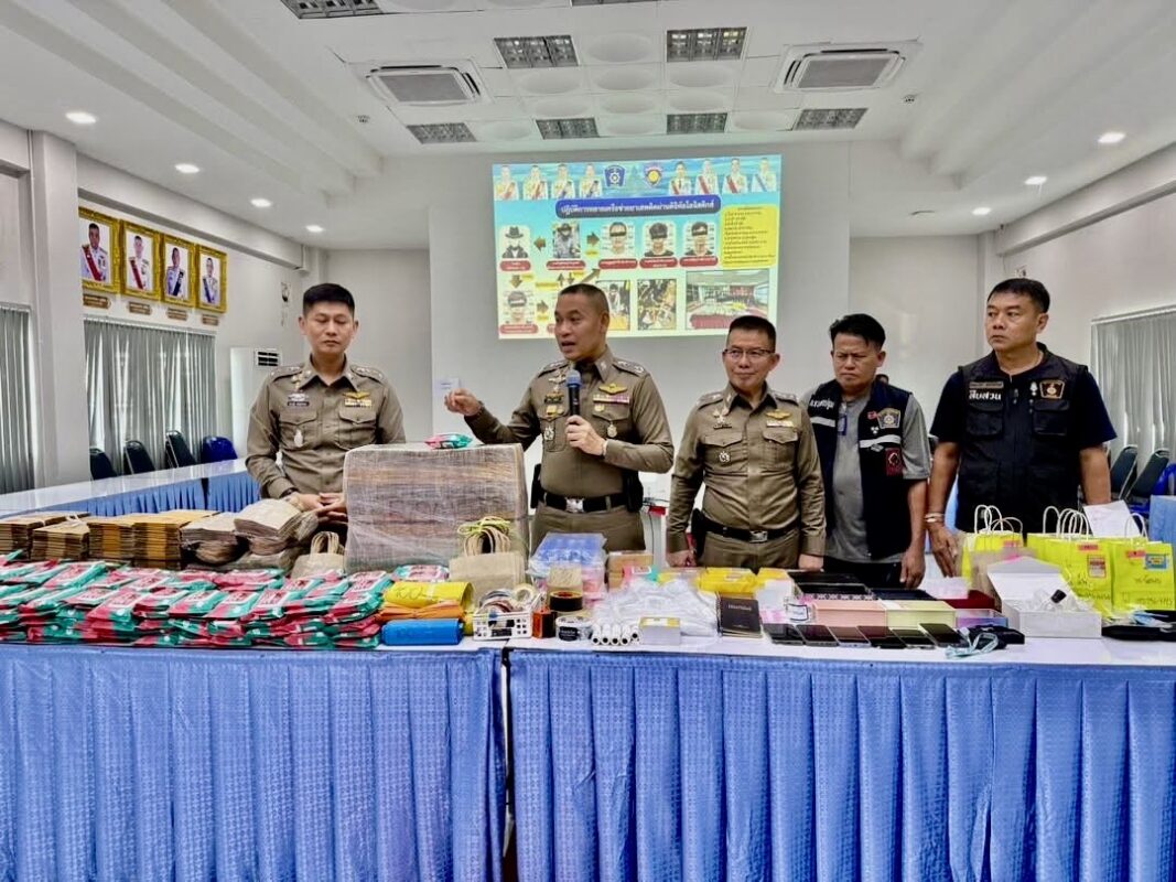 5. อุปกรณ์สำหรับแบ่งบรรจุและการแพ็กพัสดุเพื่อส่งให้ผู้ให้บริการขนส่งสินค้า LALAMOVE ประกอบด้วย ห่อกระดาษทิชชู่เปียก (ห่อสีเขียว–ชมพู) 200 ห่อ, กล่องกระดาษสีน้ำตาลสำหรับบรรจุพัสดุ 656 ใบ, ถุงซิปล็อกขนาด 3×5 นิ้ว สำหรับแบ่งบรรจุยาเสพติด 2,700 ใบ, ถุงพลาสติกเปิด–ปิดหัว สำหรับแบ่งบรรจุยาเสพติด 4,000 ใบ, เทปกาวใสสำหรับผนึกกล่อง 2 ม้วน, เครื่องปริ้นบาร์โค้ด 1 เครื่อง, กระดาษสำหรับปริ้น 9 ม้วน, ถุงแพ็กกล่องพัสดุ 318 ใบ, ถุงกระดาษชนิดหูหิ้ว 300 ใบ, สติ๊กเกอร์แปะหน้ากล่องพัสดุ 2 ม้วน, เครื่องชั่งดิจิทัล 1 เครื่อง