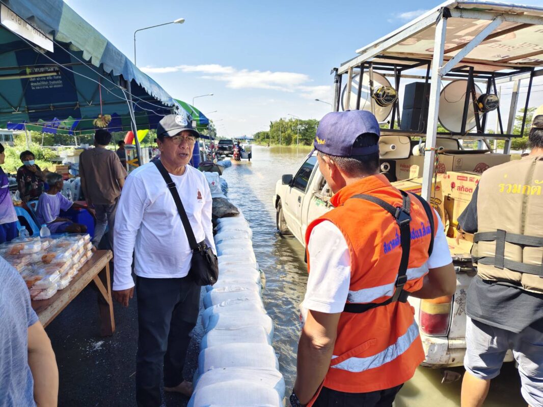 ช่วงบ่ายคณะได้เดินทางลงพื้นที่มอบสิ่งของ ณ จุดพักชั่วคราวบริเวณถนนอ่างทอง–สิงห์บุรี (หน้าโรงเรียนพระกุมารเยซู) หมู่บ้านพระฤทัย หมู่ที่ 3 ตำบลโรงช้าง อำเภอพรหมบุรี ก่อนจะเคลื่อนย้ายไปช่วยเหลือผู้ประสบภัยในพื้นที่เทศบาลเมืองสิงห์บุรีในช่วงเย็นวันเดียวกัน