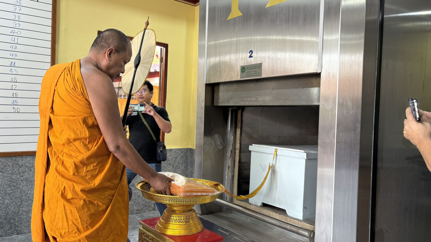 โดยมี นางสาวภิญญาพัชญ์ แตงอ่อน นักสังคมสงเคราะห์ พร้อมด้วย เจ้าหน้าที่นักสังคมสงเคราะห์ ข้าราชการตำรวจ สภ.บางพลี เจ้าหน้าที่วัด และสื่อมวลชน ร่วมฌาปนกิจนายสมดี แซ่โง้ว พระสงฆ์สวดบังสุกุลอุทิศส่วนกุศลแด่ผู้ที่ล่วงลับ