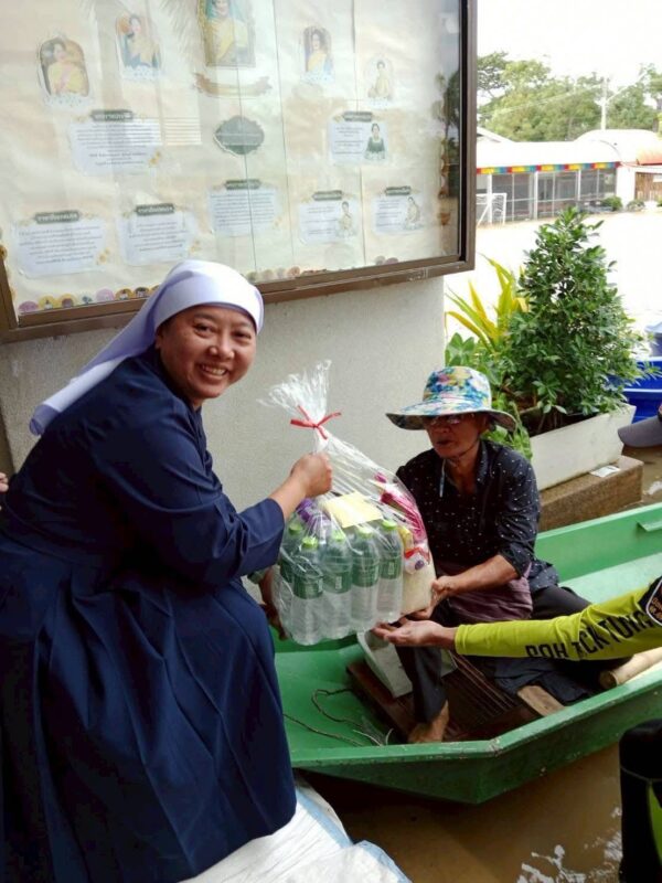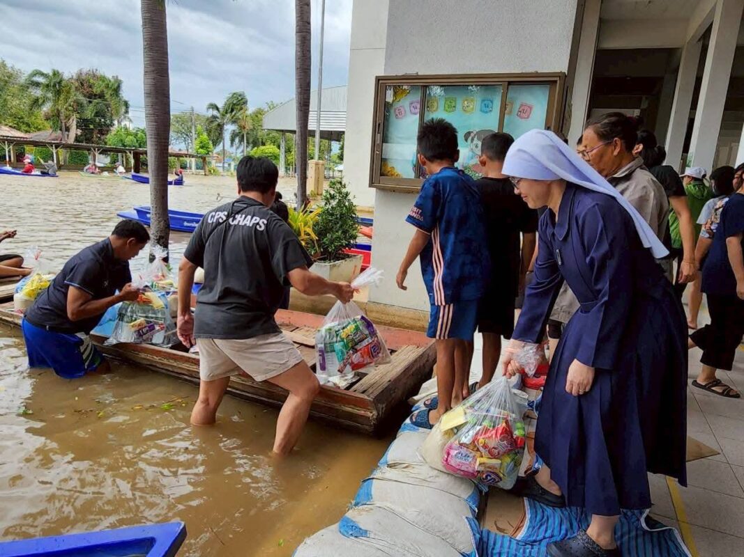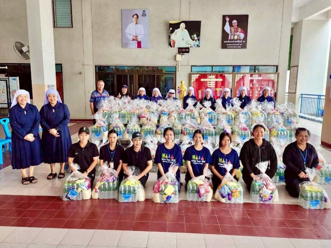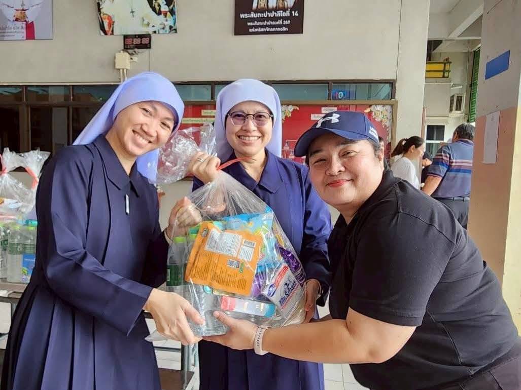 วันที่ 18 พฤศจิกายน 2568 เวลา 10.30 น. คณะภคินีพระหฤทัยของพระเยซูเจ้าแห่งกรุงเทพฯ (อารามพระหฤทัยคลองเตย) ได้กรุณาเดินทางฝ่าความลำบากจากสถานการณ์น้ำท่วม เพื่อมาเยี่ยมเยียนและมอบถุงยังชีพให้แก่พ่อ แม่ พี่ น้องใน หมู่บ้านพระหฤทัย หมู่ที่ 3 ตำบลโรงช้าง อำเภอพรหมบุรี จังหวัดสิงห์บุรี ซึ่งได้รับผลกระทบจากอุทกภัย ณ โรงเรียนพระกุมารเยซู สิงห์บุรี