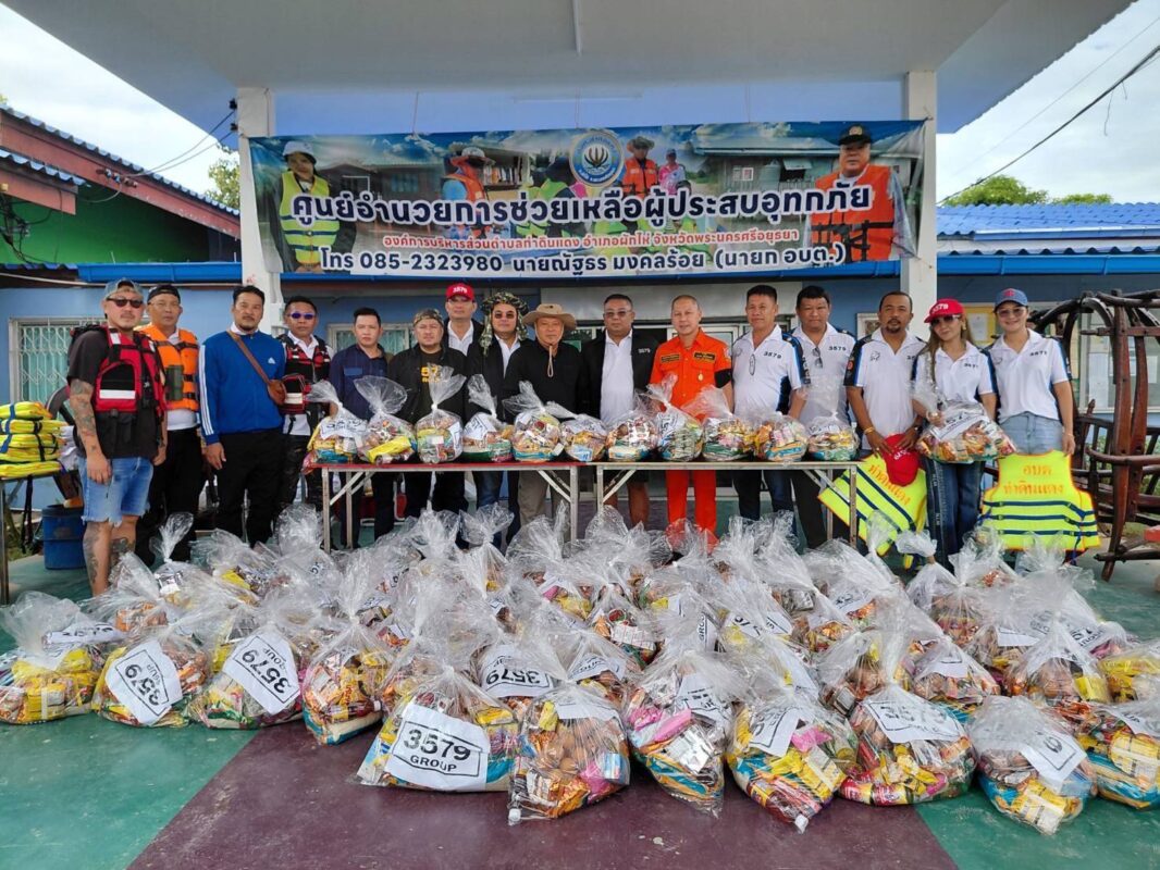 นายกโก๊ะ(ท่าทราย)” นายกสมาคมกู้ชีพบัวเพชร ต้องขอขอบคุณกลุ่ม 3579group ที่ได้ช่วยจัดเตรียมถุงยังชีพ น้ำดื่ม มอบให้แก่ผู้ประสบอุทกกภัย(น้ำท่วม)