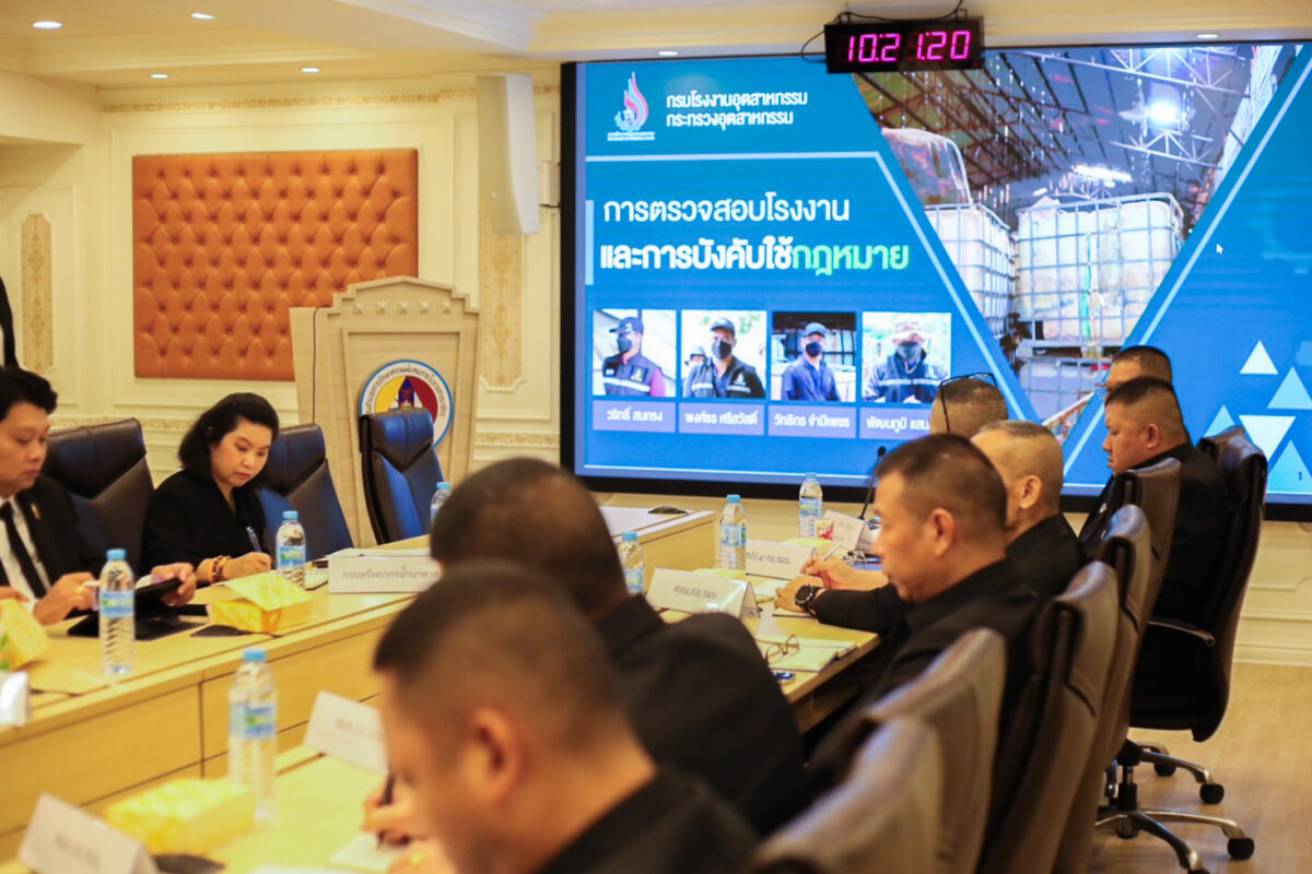 การประชุมในครั้งนี้ ทุกหน่วยงานราชการได้นำเสนอข้อมูลเพื่อกำหนดกรอบความร่วมมือ โดย กรมโรงงานอุตสาหกรรม นำเสนอประเด็นเกี่ยวกับอำนาจหน้าที่ตามกฎหมาย และภารกิจในการกำกับดูแลโรงงานอุตสาหกรรมที่อาจเป็นแหล่งกำเนิดกากสารพิษอุตสาหกรรม โดยเฉพาะโรงงานประเภทหรือชนิดในกลุ่มโรงงานผู้รับดำเนินการ ได้แก่ โรงงานลำดับที่ 101, 105 และ 106 รวมจำนวน 2,940 โรงงาน ซึ่งตั้งแต่ปี 2564 – ปัจจุบัน พบข้อมูลในระบบการขออนุญาตนำส่งกากอุตสาหกรรมไปบำบัด/กำจัด มีปริมาณกากอุตสาหกรรมเพิ่มขึ้นจากกระบวนการผลิตอย่างต่อเนื่องทุกปี โดยในปี 2567 มีกากอุตสาหกรรมที่เป็น ของเสียไม่อันตราย จำนวน 39.28 ล้านตัน และกากอุตสาหกรรมที่เป็น ของเสียอันตราย จำนวน 1.86 ล้านตัน ทั้งนี้ ในช่วงที่ผ่านมา กรมโรงงานอุตสาหกรรมได้เข้มงวดต่อการบังคับใช้กฎหมายอย่างเด็ดขาด ทั้งการใช้อำนาจตามพระราชบัญญัติโรงงาน พ.ศ. 2535 และที่แก้ไขเพิ่มเติม พระราชบัญญัติวัตถุอันตราย พ.ศ. 2535 และที่แก้ไขเพิ่มเติม รวมถึงการออกคำสั่งทางปกครอง การดำเนินคดีอาญา และการฟ้องเรียกค่าเสียหายหรือค่าใช้จ่ายที่เกิดขึ้นจากผู้กระทำผิด ซึ่งบูรณาการประสานร่วมกันกับหลายภาคส่วนที่เกี่ยวข้อง