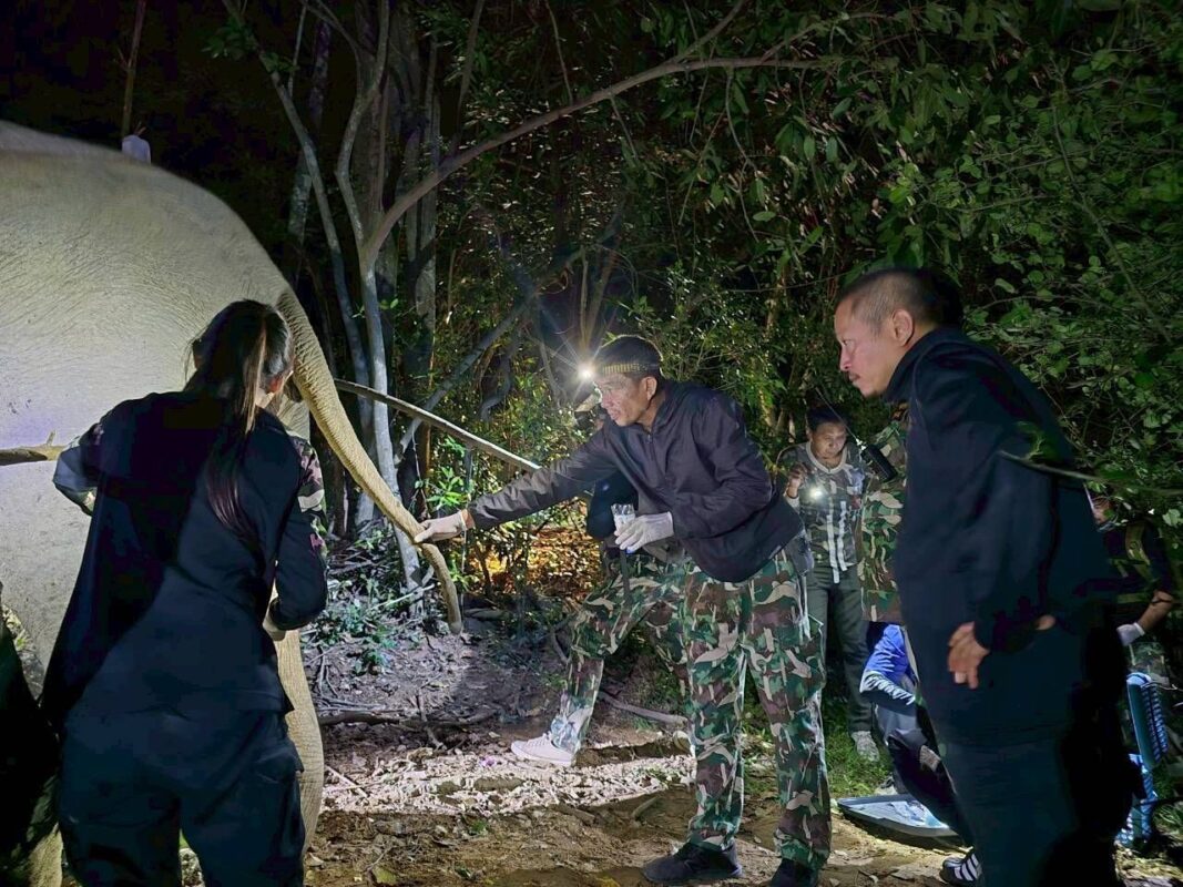 วันที่ 25 พฤศจิกายน 2568 นายนิทัศน์ นุ่นสง ผู้อำนวยการสำนักบริหารพื้นที่อนุรักษ์ที่3 สาขาเพชรบุรี ได้รับรายงานจาก นายบำรุงรัตน์ พลอยดำ หัวหน้าอุทยานแห่งชาติกุยบุรี ว่าได้ประสาน นายอนุรักษ์ สกุลพงษ์ นายสัตวแพทย์ ทีมแพทย์เจ้าหน้าที่สถานีเพาะเลี้ยงสัตว์ป่าห้วยทราย เจ้าหน้าที่ส่วนอนุรักษ์สัตว์ป่าจากสำนักบริหารพื้นที่อนุรักษ์ที่ 3 สาขาเพชรบุรี หัวหน้าหน่วยพิทักษ์อุทยานฯ ที่ กร.1 (ป่ายาง) และเจ้าหน้าที่อุทยานแห่งชาติกุยบุรี ลงพื้นที่ค้นหาและเร่งให้การช่วยเหลือช้างป่าตัวดังกล่าว โดยเจ้าหน้าที่ได้เข้าพื้นที่ก่อนใช้อากาศยานไร้คนขับ (โดรน) และกำลังพลเดินสำรวจค้นหาปรากฏว่าพบช้างป่าตัวที่ได้รับบาดเจ็บดังกล่าว ทีมสัตวแพทย์ฯได้วางแผนยิงยาซึมและรอจนยาออกฤทธิ์เพื่อทำการรักษาช้างป่า เบื้องต้นตรวจพบบาดแผลขนาด 0.5 ซม.ที่ขาหลังด้านซ้าย และมีอาการบวมแผลลึกไม่น้อยกว่า10 ซม.ซึ่งคาดว่าน่าจะเป็นรอยกระสุนปืน แต่เจ้าหน้าที่ไม่มีเครื่องตรวจสอบวัตถุโลหะ เจ้าหน้าที่จึงได้เร่งทำการรักษาพร้อมเฝ้าดูอาการตลอดจนช้างเริ่มขยับตัวและเดินได้เอง เจ้าหน้าที่อุทยานแห่งชาติกุยบุรีและทีมสัตว์แพทย์จึงได้ออกจากพื้นที่ ก่อนมอบหมายให้เจ้าหน้าที่หน่วยฯป่ายาง ค่อยเฝ้าติดตามอาการช้างป่าตัวดังกล่าวต่อไป