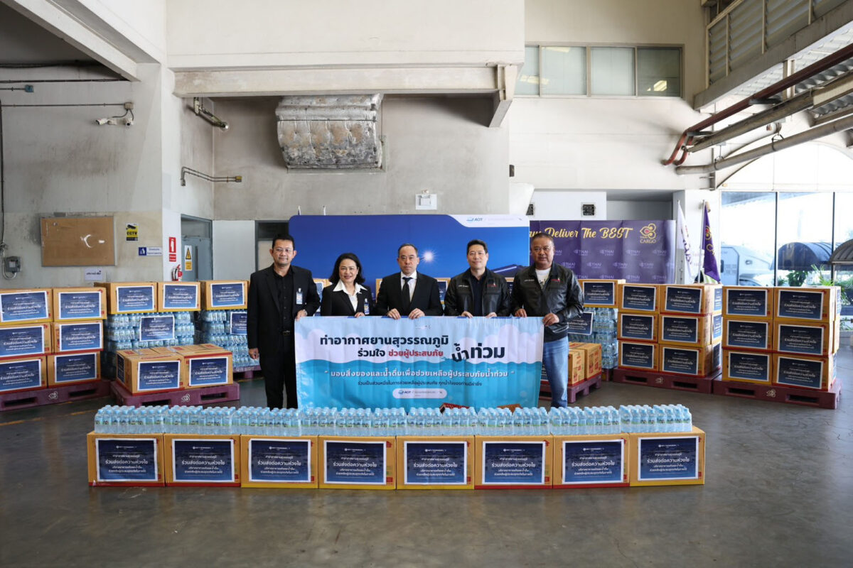 วันที่ 27 พฤศจิกายน 2568 เวลา 14.00 น. นายกิตติพงศ์ กิตติขจร ผู้อำนวยการท่าอากาศยานสุวรรณภูมิ บริษัท ท่าอากาศยานไทย จำกัด (มหาชน) (ทอท.) พร้อมด้วยผู้บริหารและพนักงาน ร่วมส่งมอบน้ำดื่มตราสัญลักษณ์ ท่าอากาศยานสุวรรณภูมิ (ทสภ.) จำนวน 834 แพ็ค (10,008 ขวด) พร้อมอาหารแห้ง ได้แก่ มาม่าคัพ 90 ลัง (6,480 ถ้วย) และยูโร่คัสตาร์ดเค้ก 37 ลัง (5,328 ชิ้น) ณ บริเวณคลังสินค้าภายในประเทศการบินไทย ทสภ. ทั้งนี้ได้รับการสนับสนุนเที่ยวบินพิเศษจากบริษัท พัทยา แอร์เวย์ จำกัด เพื่อลำเลียงสิ่งของช่วยเหลือพี่น้องประชาชนที่ประสบอุทกภัยในจังหวัดสงขลาและพื้นที่ใกล้เคียง
