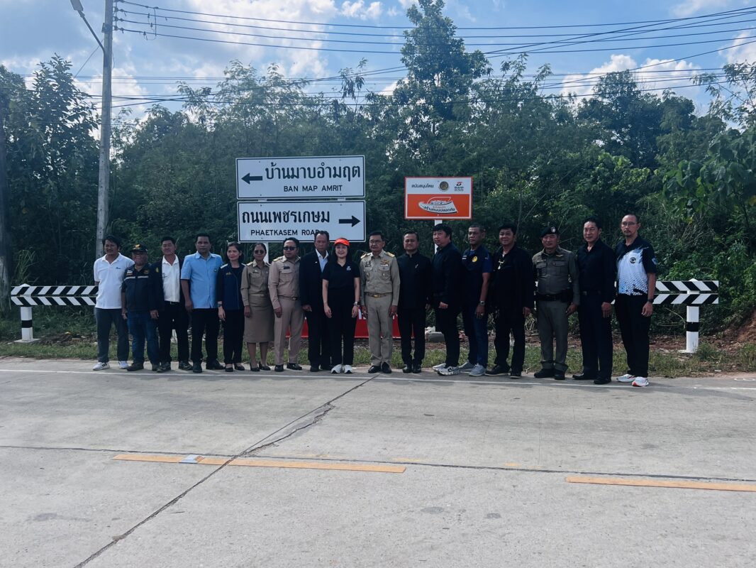 ธนชาตประกันภัย จึงสนับสนุนงบประมาณ จำนวน 200,000 บาท ให้แก่เทศบาลตำบลมาบอำมฤต เพื่อจัดให้มีอุปกรณ์ลดจุดเสี่ยงบนถนน และอาณัติสัญญาณด้านความปลอดภัยทางถนน จำนวนทั้งสิ้น 8 รายการ ประกอบด้วย ไฟกระพริบ, ป้ายแบบ ต.13 (ป้ายเตือนทางแยก), ป้ายแบบ บ.54 (ป้ายบังคับความเร็วขั้นต่ำ) จำนวน 1 ชุด, ไฟกระพริบ, ป้ายแบบ ต.14 (ป้ายเตือนทางแยก) จำนวน 1 ชุด, ไฟกระพริบ, ป้ายแบบ บ.1 (ป้ายบังคับหยุด) จำนวน 1 ชุด, ป้ายบอกทาง แบบ น.2 (2 แผ่นป้าย/ชุด) จำนวน 1 ชุด, ป้ายแบบ ต.63 /ต.66 เตือนแนวทาง (2 แผ่นป้าย/ชุด) จำนวน 3 ชุด, ป้ายแบบ ต.63/ต.66 เตือนแนวทาง แบบพลังงานแสงอาทิตย์ (2 แผ่นป้าย/ชุด) จำนวน 2 ชุด, แผงไม้กั้นถนน จำนวน 12 เมตร, หมุดลูกแก้วสะท้อนแสง พลังงานแสงอาทิตย์ จำนวน 30 ดวง