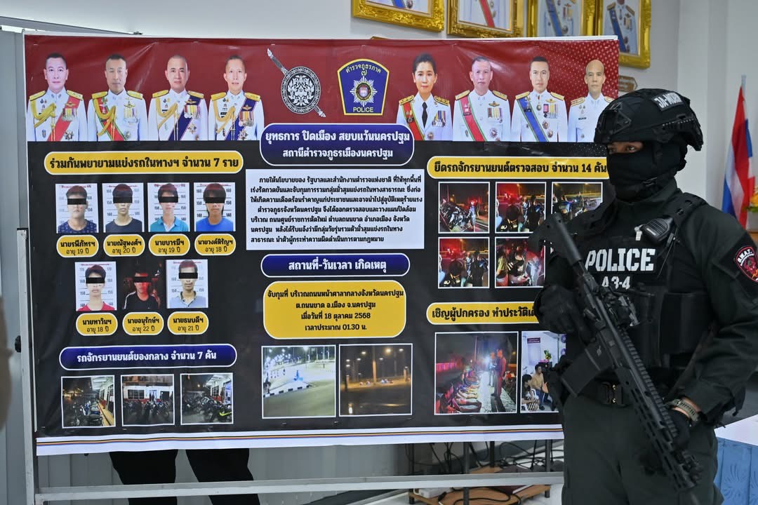 เมื่อวันที่ 18 ตุลาคม 2568 เวลาประมาณ 01.00 น. เจ้าหน้าที่ตำรวจ สภ.เมืองนครปฐม ได้ดำเนินยุทธการ “ปิดเมืองสยบแว้นนครปฐม” โดยได้จับกลุ่มผู้ต้องหาจำนวน 7 ราย บริเวณถนนสาธารณะเส้นทางหน้าศาลากลางจังหวัดนครปฐม ในข้อหาร่วมกันพยายามแข่งรถในทางโดยไม่ได้รับอนุญาตเป็นหนังสือจากพนักงานจราจร และเมื่อวันที่ 15 ธันวาคม 2568 ศาลแขวงนครปฐม ได้มีคำพิพากษาลงโทษจำเลยทั้ง 7 คน จำคุกคนละ 1 เดือน ปรับคนละ 2,500 บาท ทั้งนี้โทษจำคุกให้รอลงอาญา 2 ปี และริบรถจักรยานยนต์ของกลางตกเป็นของแผ่นดิน