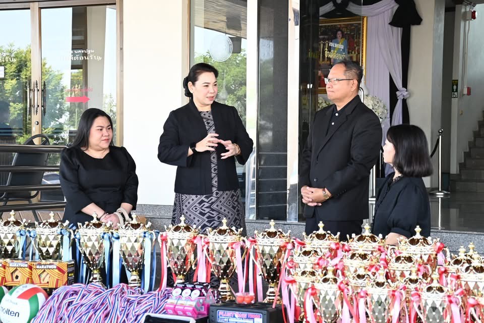 วันที่ 17 ธันวาคม 2568 อบจ.นครปฐม โดยการนำของ นายจิรวัฒน์ สะสมทรัพย์ นายก อบจ.นครปฐม มอบอุปกรณ์การแข่งกันกีฬา เหรียญรางวัล และถ้วยรางวัล ให้แก่ กลุ่มโรงเรียนท่าจีน สังกัดสำนักงานเขตพื้นที่การศึกษานครปฐมเขต 2 ซึ่งจะใช้ในการจัดการแข่งขันกีฬาต้านยาเสพติด เสริมความสามัคคี กลุ่มท่าจีนก้าวหน้า “ท่าจีนเกมส์“ ครั้งที่ 10 ระหว่างวันที่ 22 – 24 ธันวาคม 2568 ณ สนามกีฬาโรงเรียนบ้านบางม่วง สนามกีฬาโรงเรียนวัดเชิงเลน และสนามกีฬาโรงเรียนวัดบางช้างใต้