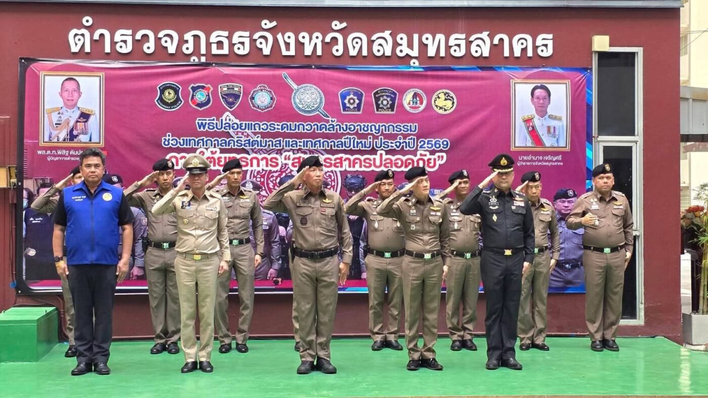 วันที่ 17 ธันวาคม 2568 เวลา 16.00 น. ที่ลานรวมพลตำรวจภูธรจังหวัดสมุทรสาคร พล.ต.ท.พิสิฐ ตันประเสริฐ ผู้บัญชาการตำรวจภูธรภาค 7 และ นายอำนาจ เจริญศรี ผู้ว่าราชการจังหวัดสมุทรสาคร ให้เกียรติเป็นประธานในพิธีปล่อยแถวระดมกวาดล้างอาชญากรรม เนื่องในเทศกาลคริสต์มาสและเทศกาลปีใหม่ 2569
