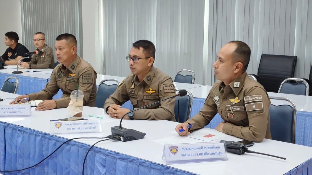 วันที่ 22 ธันวาคม 2568 เวลา 10.30 น. ณ ห้องประชุม ศปก.ภ.จว.นครปฐม ต.ถนนขาด อ.เมือง จ.นครปฐม พล.ต.ต.พิทักษ์ อุปพงษ์ ผบก.ภ.จว.นครปฐม (ประธานการประชุม) พ.ต.อ.กฤษณัฐ วงษ์กล้าหาญ รอง ผบก.ภ.จว.นครปฐม พร้อมด้วย พ.ต.อ.อชิรวัตติ์ ถาวรเจริญวัฒน์ ผกก.สภ.เมืองนครปฐม สว.(สอบสวน)ฯ ปฏิบัติหน้าที่ หน.จร.สภ.โพธิ์แก้ว, สว.ฝอ.ภ.จว.นครปฐม และข้าราชการตำรวจที่เกี่ยวข้อง ในสังกัด ภ.จว.นครปฐม ประชุมเตรียมความพร้อมในการจัดทำโครงการ “นครปฐม 1 หมวก 1 น้ำใจ พิทักษ์ภัยทางถนน”