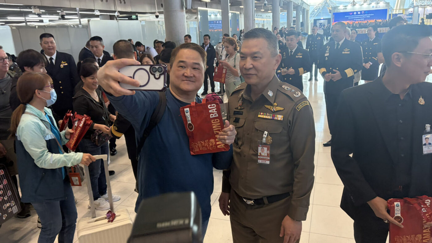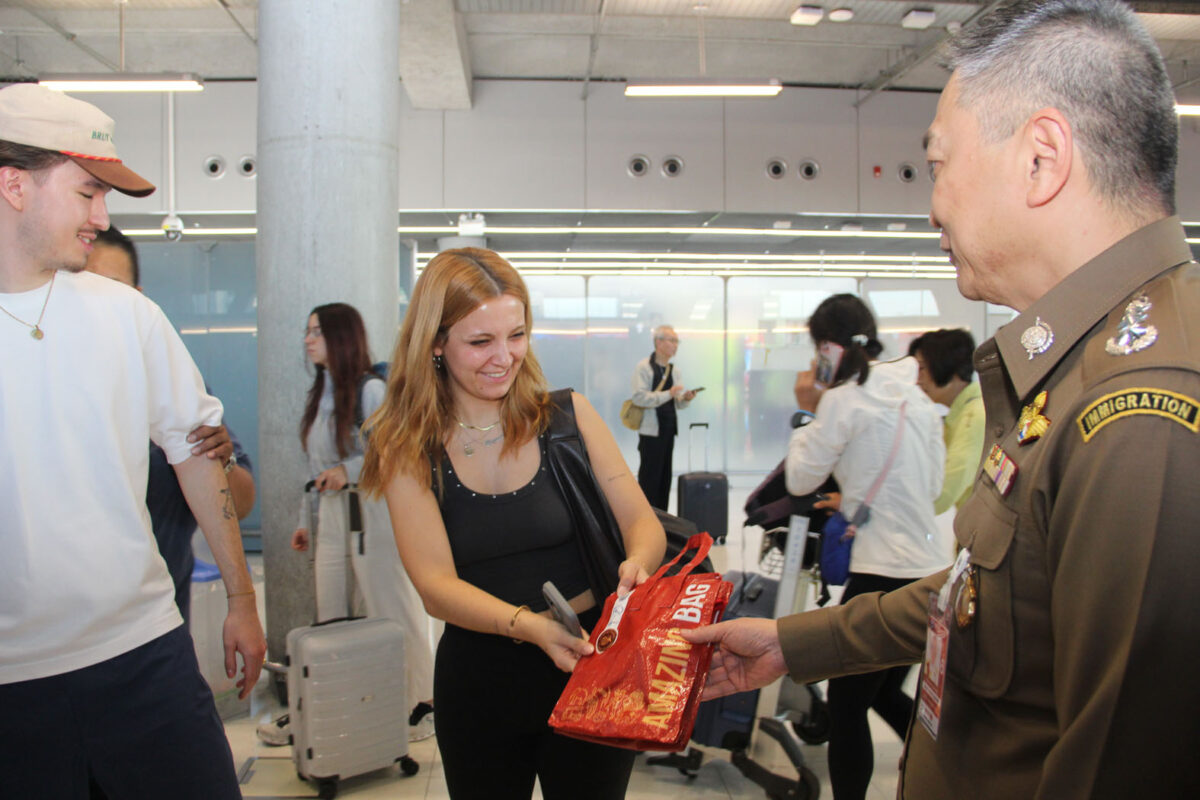 โอกาสนี้ เจ้าหน้าที่ตรวจคนเข้าเมืองได้ร่วมต้อนรับนักท่องเที่ยวขาเข้าจากต่างประเทศ พร้อมมอบของที่ระลึก “Amazing Bag” ซึ่งบรรจุของที่ระลึกที่สะท้อนอัตลักษณ์และเสน่ห์ความเป็นไทย เพื่อสร้างความประทับใจตั้งแต่ก้าวแรกที่นักท่องเที่ยวเดินทางถึงประเทศไทย