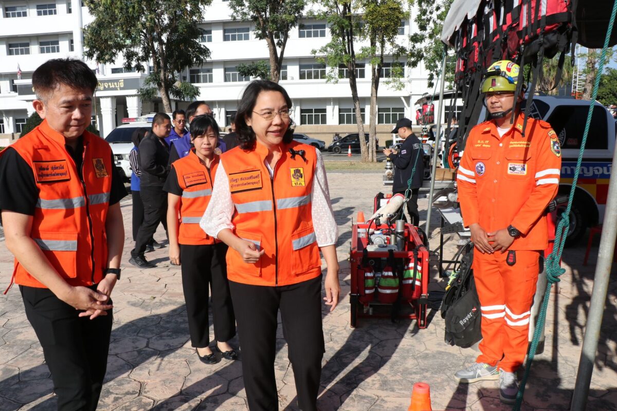 วันที่ 26 ธันวาคม 2568 เวลา 15.00 น. ณ บริเวณหน้าเสาธง สนามหน้าศาลากลางจังหวัดกาญจนบุรี นางสาววริษฐา สงวนเสริมศรี ผู้ว่าราชการจังหวัดกาญจนบุรี เป็นประธานในพิธีเปิด “ศูนย์ปฏิบัติการป้องกันและลดอุบัติเหตุทางถนนช่วงเทศกาลปีใหม่ 2569” เพื่อเตรียมความพร้อมในการดูแลความปลอดภัยของประชาชนในช่วงเทศกาลส่งท้ายปีเก่าต้อนรับปีใหม่ พร้อมด้วย นายวุฒิพงษ์ สุภัควนิช รองผู้ว่าราชการจังหวัดกาญจนบุรี หัวหน้าส่วนราชการ เข้าร่วมปล่อยแถวฯ โดยมี นางตรีทิพ วรรณเข็มทอง รักษาราชการแทนหัวหน้าสำนักงานป้องกันและบรรเทาสาธารณภัยจังหวัดกาญจนบุรี กล่าวรายงานถึงวัตถุประสงค์ของการจัดตั้งศูนย์ฯ ซึ่งเป็นการบูรณาการร่วมกันระหว่างหน่วยงานภาครัฐ ภาคเอกชน ฝ่ายปกครอง มูลนิธิ และอาสาสมัครในพื้นที่ฯ