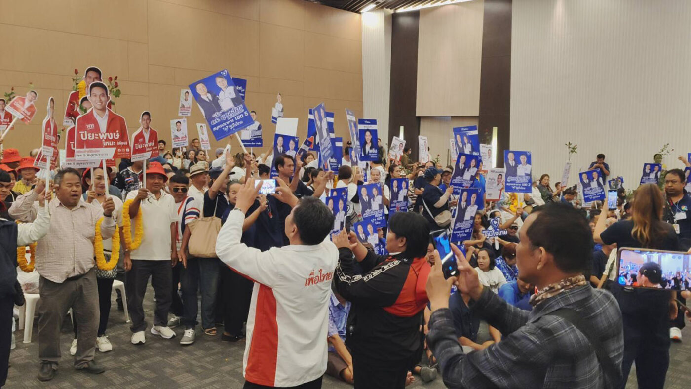 ขณะเดียวกัน กองเชียร์ของแต่ละพรรคและผู้สมัครต่างพากันเดินทางมาให้กำลังใจอย่างเนืองแน่น สร้างสีสันและบรรยากาศคึกคักตลอดพื้นที่รับสมัคร ท่ามกลางการรักษาความสงบเรียบร้อยจากเจ้าหน้าที่ตำรวจที่จัดกำลังดูแลอย่างเข้มงวด