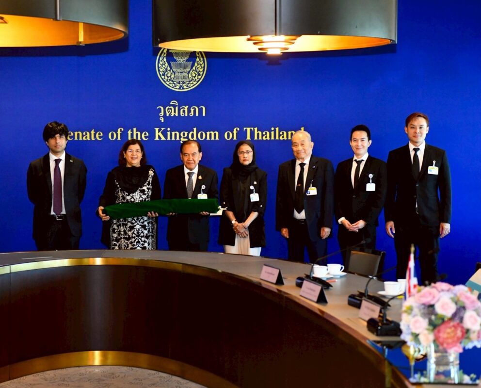 โดยคณะกรรมาธิการการต่างประเทศ วุฒิสภา มีความยินดีอย่างยิ่งที่ได้มีโอกาสต้อนรับเอกอัครราชทูตสาธารณรัฐอิสลามปากีสถานประจำประเทศไทย ซึ่งความสัมพันธ์ไทย-ปากีสถานมีมายาวนานกว่า 74 ปี โดยเมื่อเดือนพฤศจิกายน 2568 ทั้งสองประเทศจัดการประชุมทางการเมืองครั้งที่ 3 ณ กรุงอิสลามาบัด เน้นย้ำความร่วมมือด้านการค้า การลงทุน การศึกษา และการปฏิสัมพันธ์ระหว่างประชาชน เพื่อมุ่งสู่ความร่วมมือเชิงยุทธศาสตร์ ส่วนด้านความร่วมมือระหว่างรัฐสภา ทั้งสองประเทศมีกลุ่มมิตรภาพรัฐสภาตั้งแต่ปี 2542 และร่วมงานในกรอบสหภาพรัฐสภา (IPU) สมัชชารัฐสภาเอเชีย (APA) และสมัชชารัฐสภาอาเซียน (AIPA) โดยรัฐสภาไทยได้นำเสนอข้อมติต่อต้านอาชญากรรมไซเบอร์ข้ามพรมแดนควบคู่กับการธํารงไว้ซึ่งหลักมนุษยธรรม ในการประชุม IPU ครั้งที่ 151 เมื่อเดือนตุลาคม 2568 และไทยได้ลงนามอนุสัญญาสหประชาชาติต่อต้านอาชญากรรมไซเบอร์ พร้อมจัดประชุมระหว่างประเทศเพื่อต่อต้านอาชญากรรมหลอกลวงทางอินเทอร์เน็ต (IC-GPOS) เมื่อเดือนธันวาคม 2568 จึงมุ่งหวังว่ารัฐสภาไทยและปากีสถานจะได้แลกเปลี่ยนประสบการณ์ในการแก้ไขปัญหาที่ท้าทายร่วมกัน
