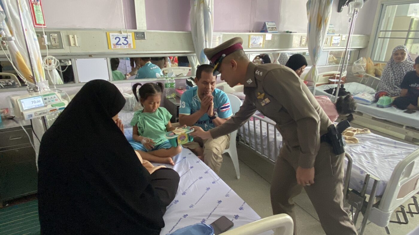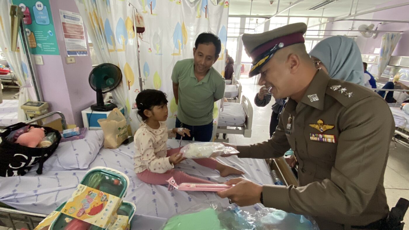 วันที่ 9 มกราคม 2569 ผู้สื่อข่าวรายงานว่า เจ้าหน้าที่ตำรวจจากสถานีตำรวจภูธรเมืองนราธิวาส นำโดย พ.ต.อ.ปรัชญา ไบเตะ ผู้กำกับการสถานีตำรวจภูธรเมืองนราธิวาส ได้นำความสุขและรอยยิ้มไปมอบให้กับเด็กๆ ที่ไม่สามารถเดินทางไปร่วมงานฉลองตามสถานที่ต่างๆได้ เนื่องจากกำลังรักษาตัวอยู่ที่ ตึกเปี่ยมสุข หอผู้ป่วยกุมารเวชกรรม โรงพยาบาลนราธิวาสราชนครินทร์ ตำบลบางนาค อำเภอเมือง จังหวัดนราธิวาส