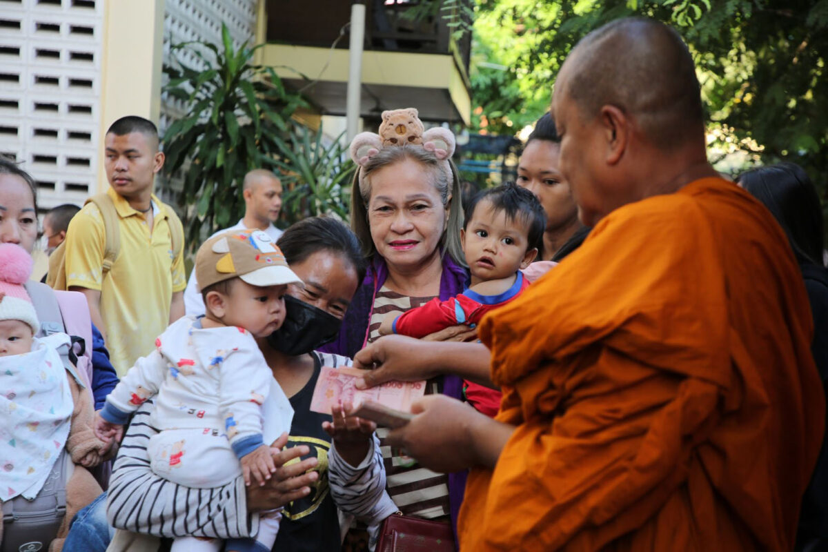 สมุทรปราการ – เด็กบางพลีไม่ผิดหวัง แห่รับเงินขวัญถุงวันเด็กแน่นวัดบางพลีใหญ่กลาง