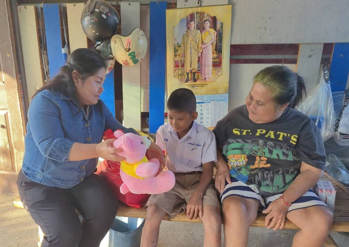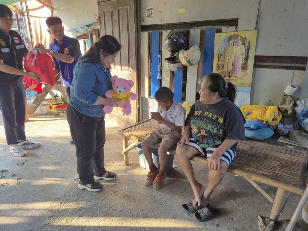 คณะกิ่งกาชาดได้มอบของขวัญวันเด็ก อาทิ ตุ๊กตาหมี นมสำหรับดื่ม ของใช้ที่จำเป็น รวมถึงเครื่องอุปโภคบริโภค เพื่อช่วยบรรเทาภาระค่าใช้จ่าย และสร้างขวัญกำลังใจให้แก่เด็กและครอบครัว ท่ามกลางบรรยากาศที่อบอุ่นและเปี่ยมไปด้วยรอยยิ้ม