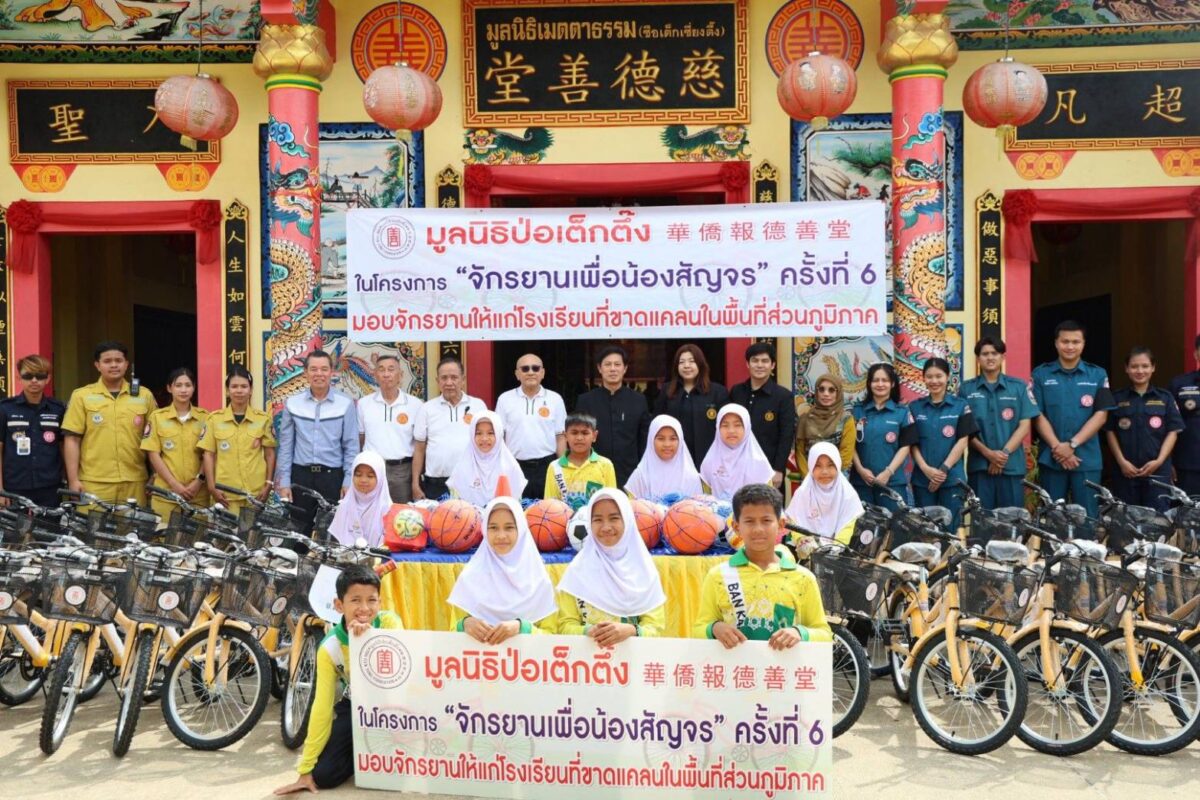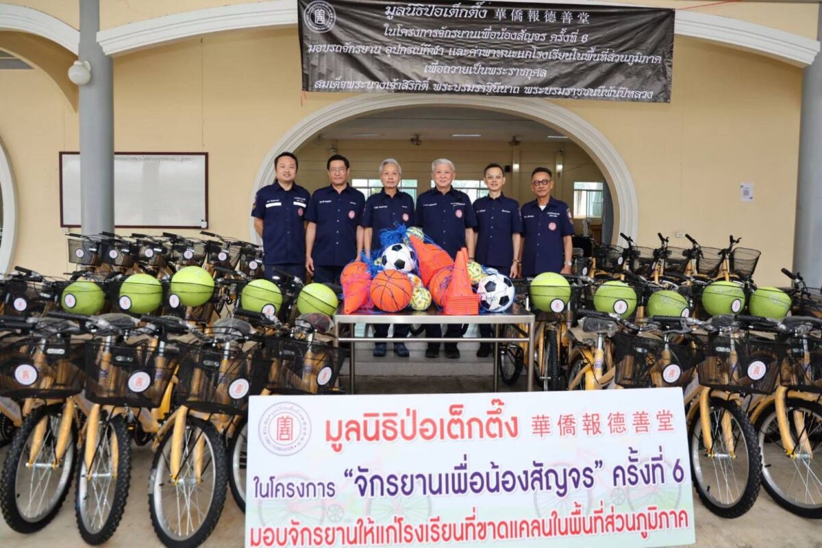 มูลนิธิป่อเต็กตึ๊ง หนุนการศึกษาเยาวชน 100 โรงเรียนในพื้นที่ชนบทภาคกลาง-ใต้ รวม 20 จังหวัด มอบจักรยาน-อุปกรณ์กีฬา ในโครงการ “จักรยานเพื่อน้องสัญจร” ครั้งที่ 6 รวมมูลค่ากว่า 2.85 ล้านบาท เน้นสร้างชีวิตอย่างยั่งยืน