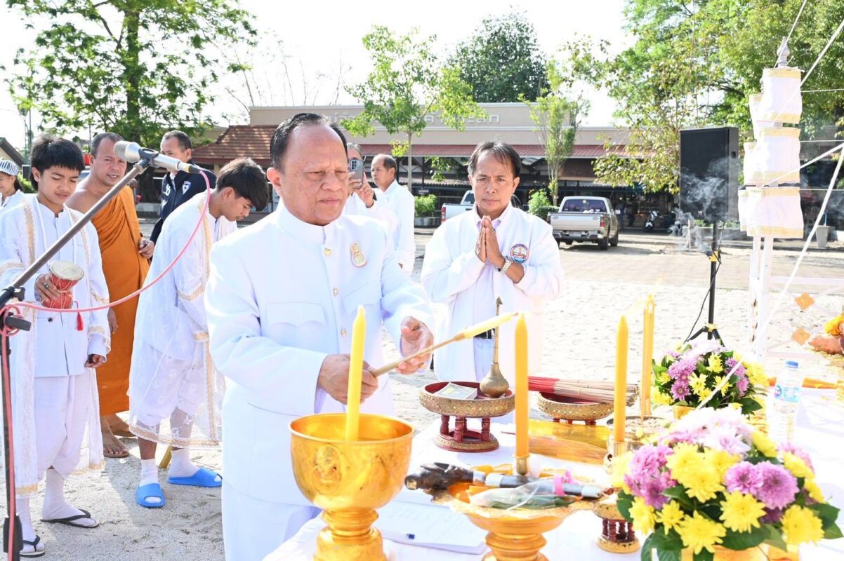 วันที่ ๒๗ มกราคม ๒๕๖๙ เวลา ๐๙.๐๙ น. ณ หน้าวิหารหลวงวัดพระมหาธาตุวรมหาวิหาร อำเภอเมือง จังหวัดนครศรีธรรมราช ผู้สื่อข่าวรายงานว่า นาย ทวีศักดิ์ สุทิน ประธานประเพณีแห่ผ้าขึ้นธาตุ ครั้งที่ ๑๓ และคุณโสภิต สุทิน (ภริยา) เป็นประธานจุดธูปเทียนบวงสรวงเทวาพุทธาภิเษก วัตถุมงคล เหรียญหลวงปู่ทวดและเหรียญพ่อท่านคล้ายวาจาสิทธิ์พร้อมโล่ดอกบัว ๑๒ นักษัตรโดยพระครูสถิตย์วัฒนานุกูล (พระอาจารย์เหนียว) จากวัดโคกโพธิ์สถิตย์ ลานสกาเจ้าพิธีและอ่านโองการ บวงสรวงเทวาบอกกล่าว อัญเชิญ เทพเทวดาโดยพราหมณ์ศิวกร ยอดไชย โดยมี นายชุมพล ชูวิลาศ นายกสมาคมชาวนครศรีธรรมราช กรุงเทพฯและคณะทำงานประเพณีแห่ผ้าขึ้นธาตุ (ครั้งที่ ๑๓) อาทิ ผอ.วินัย สุทิน อุปนายกคนที่ ๑ นายอรุณ ธรรมขันธ์, นายวลิตร สุทิน, ดร.ไพศาล สงแก้ว,นางผุสดี หิมะมาน, นายโกเมน รุ่งเรื่องสกุล, นายจรินญา บุญยะหัตย์นายธีระพร ใจซื่อดี, นางปิยพร บัวเกตุ, นายวิรัตน์ แป้นแก้ว, นายธวัช เชาวลิต, นายสาธิต ทองสม, นายประเด็น สิงหภาณุพงศ์, นายบัณทิต คุรุเสถียรกิจ พร้อมท่านผู้มีเกียรติเข้าร่วมงาน ในครั้งนี้ นายวิทยา เขียวรอด รองผู้ว่าราชการจังหวัดนครศรีธรรมราช,นางสมศรี แสงแก้ว วัฒนธรรมจังหวัดนครศรัธรรมราช,คุณยงยุทธ เลอวิศิษฏ์ (โกลาย)