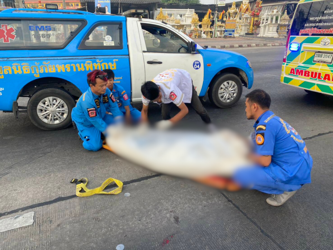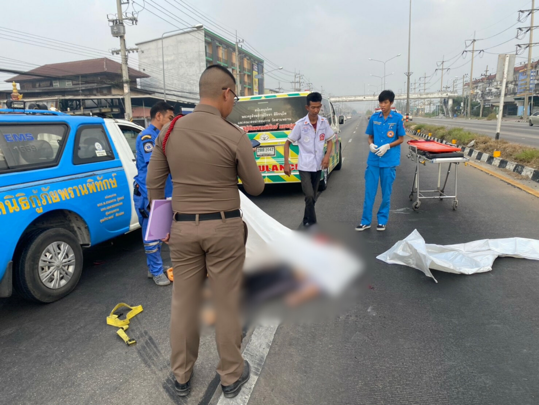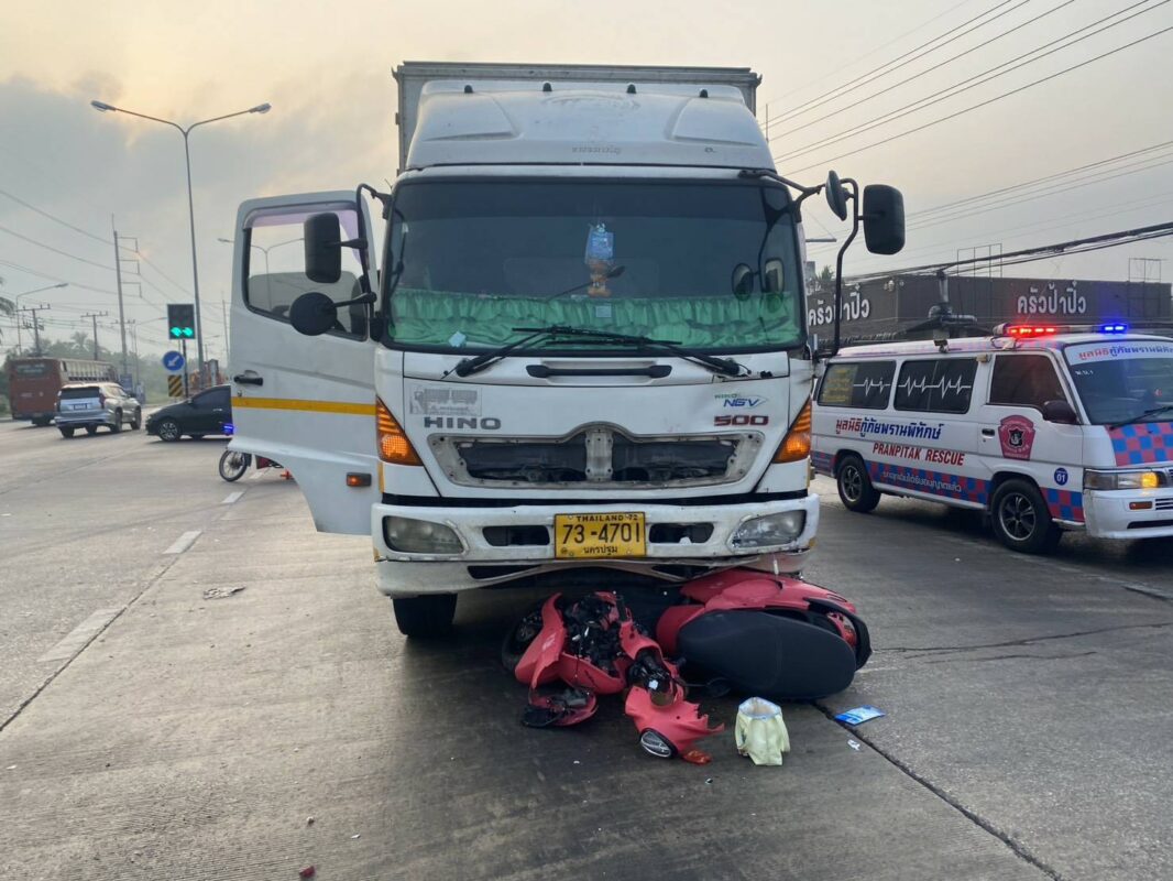 นครปฐม – หกล้อซิ่งฝ่าไฟแดงชนจยย.ดับคาที่