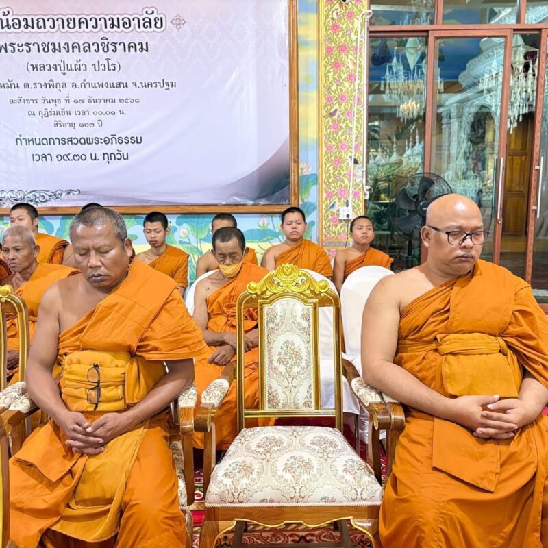 ณ ศาลาร่มเย็น วัดรางหมัน อ.กำแพงแสน จ.นครปฐม พระครูโกศลธรรมรัตน์ เจ้าอาวาสวัดวังน้ำเขียว รองเจ้าคณะอำเภอกำแพงแสนพร้อมคณะสงฆ์อำเภอกำแพงแสน ร่วมพิธีสวดพระอภิธรรมถวายแด่ พระราชมงคลวชิราคม (หลวงปู่แผ้ว ปวโร) อดีตเจ้าอาวาสวัดประชาราษฎร์บำรุง (วัดรางหมัน) พร้อมด้วยนายธีระ วรรณเกตุศิริ ผู้อำนวยการโรงเรียนกำแพงแสนวิทยาพร้อมคณะครูโรงเรียนกำแพงแสนวิทยาเป็นเจ้าภาพ สวดพระอภิธรรมถวายแด่ พระราชมงคลวชิราคม (หลวงปู่แผ้ว ปวโร) อดีตเจ้าอาวาสวัดประชาราษฎร์บำรุง (วัดรางหมัน) โดยมีศิษยานุศิษย์และประชาชนเข้าร่วมพิธีด้วยความสงบนิ่งเพื่อไว้อาลัยเป็นจำนวนมาก